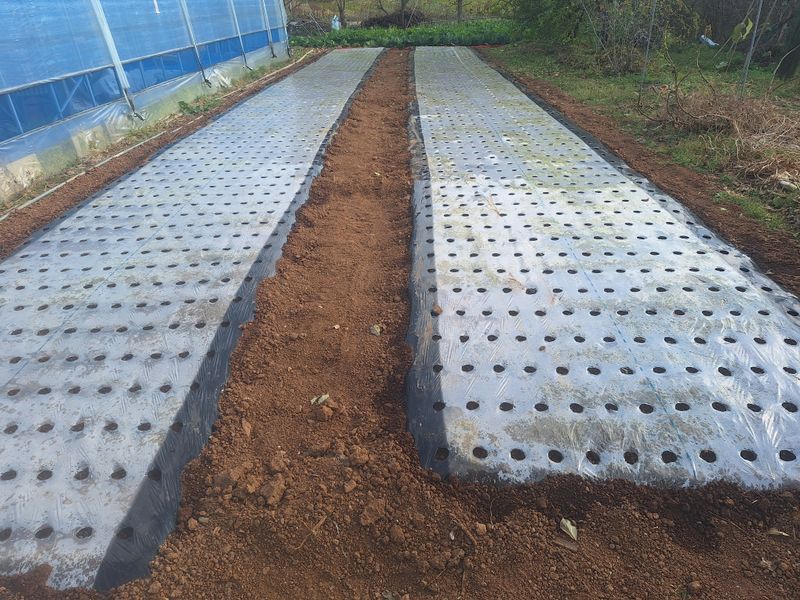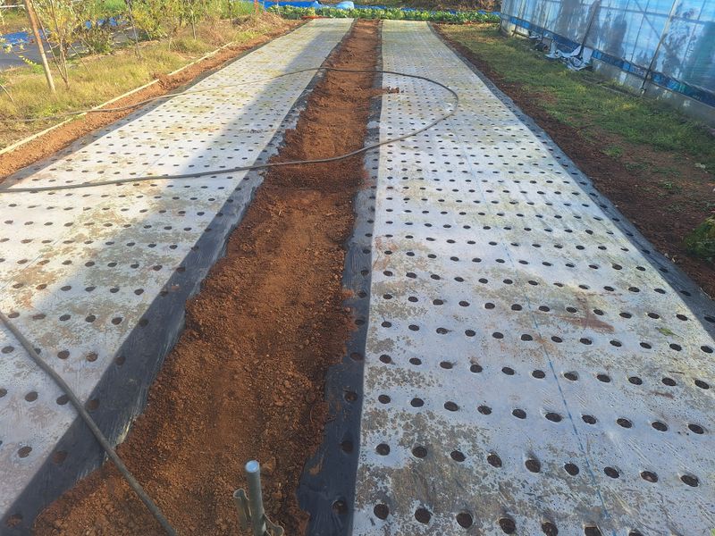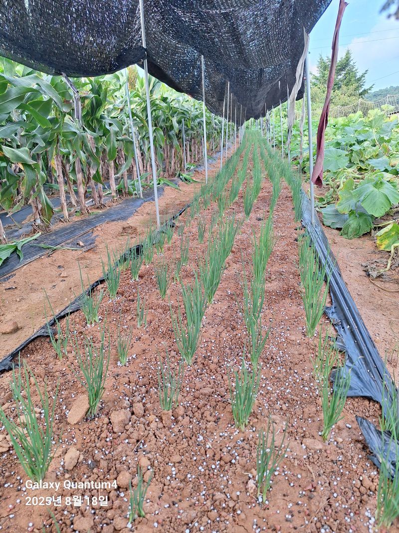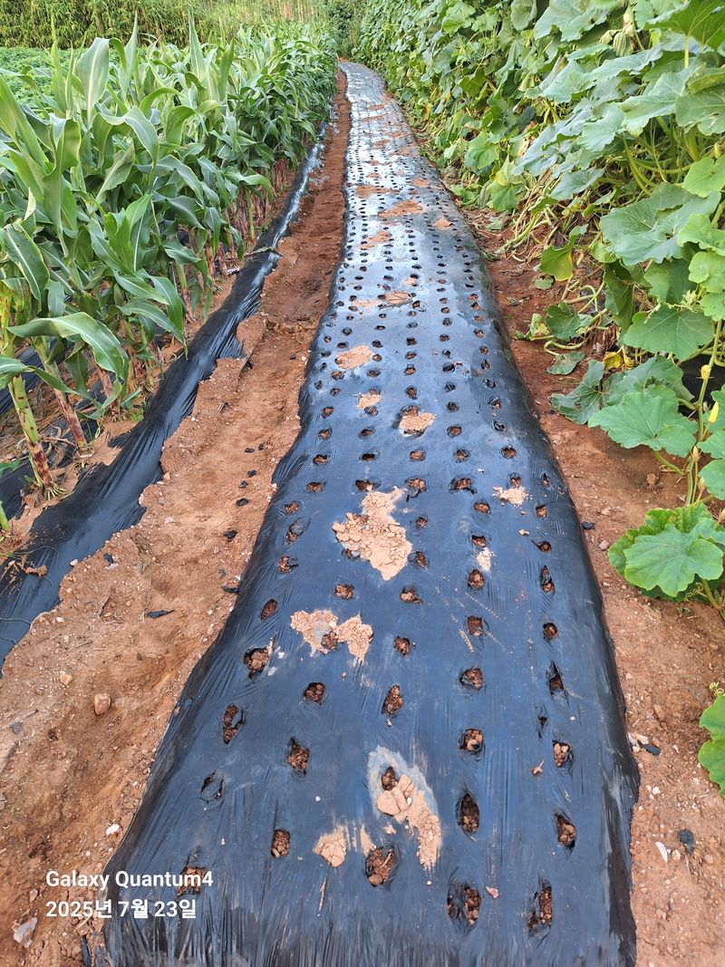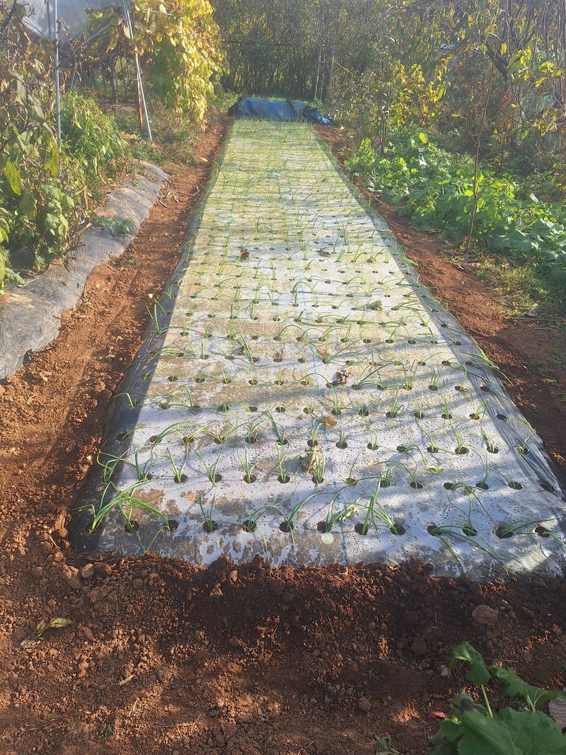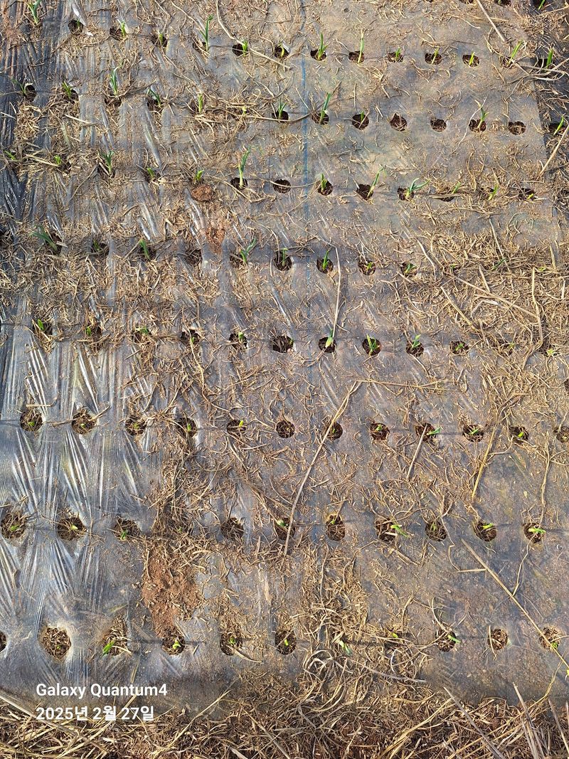 쪽파를 30m2 면적에 검정비닐을 씌우고 심었다.