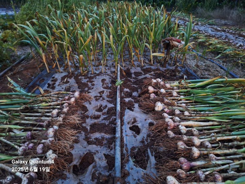 날씨가 지속적으로 가물어 마늘밭에 물주기 작업을 하였다. 마늘 뿌리가 빨리 내리도록 하고 동절기에 서릿발이 나타나지 않게 하기위한 농작업을 하였다.