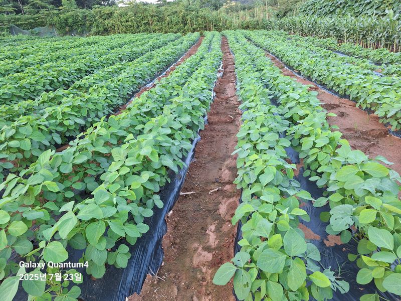 고구마넝쿨 2차 들어주기 작업 콩밭 농약살포