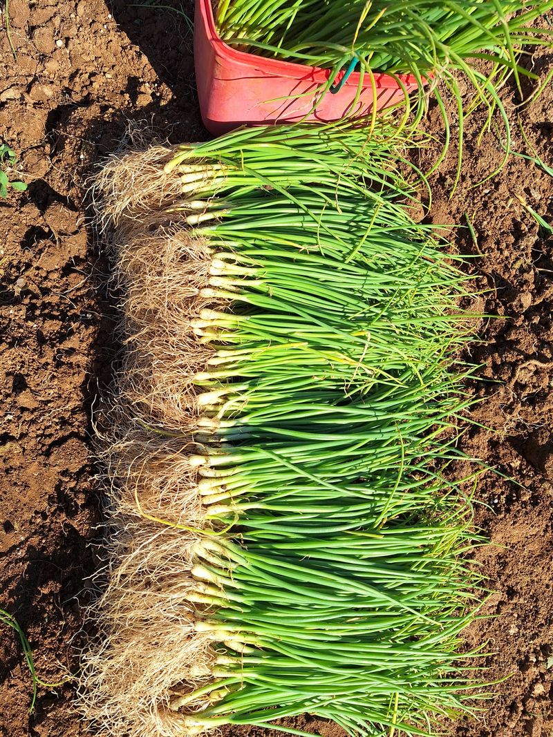 쪽파 비닐을 걷어내고 엔케이 비료를 살포한 다음에 물을 주었다.