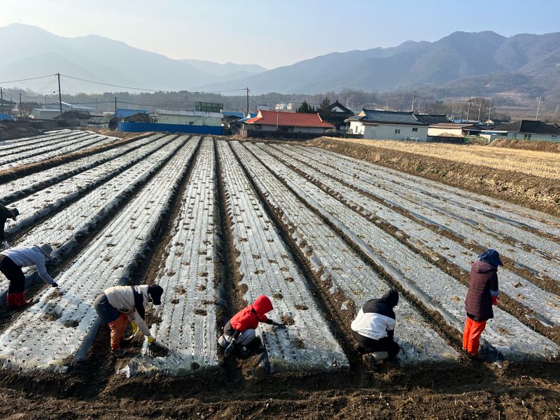 구미인력 아침 한 시간 날씨가 너무 추워서 양파 상처날까봐 엄마 오후에 작업