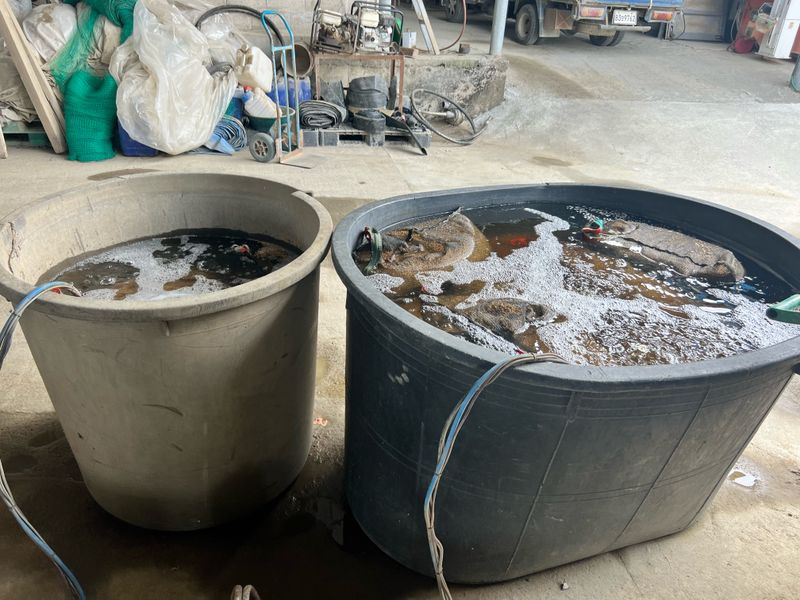 물에 하루정도 발아기와 함께 담구기 진옥(40 kg 3개) 찰벼(40kg 4개) 영호진미(20kg 10개)
