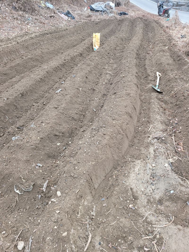 감자 심을려고 밭 고랑 만들었어요