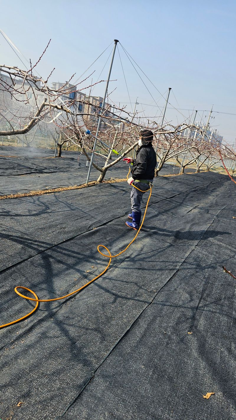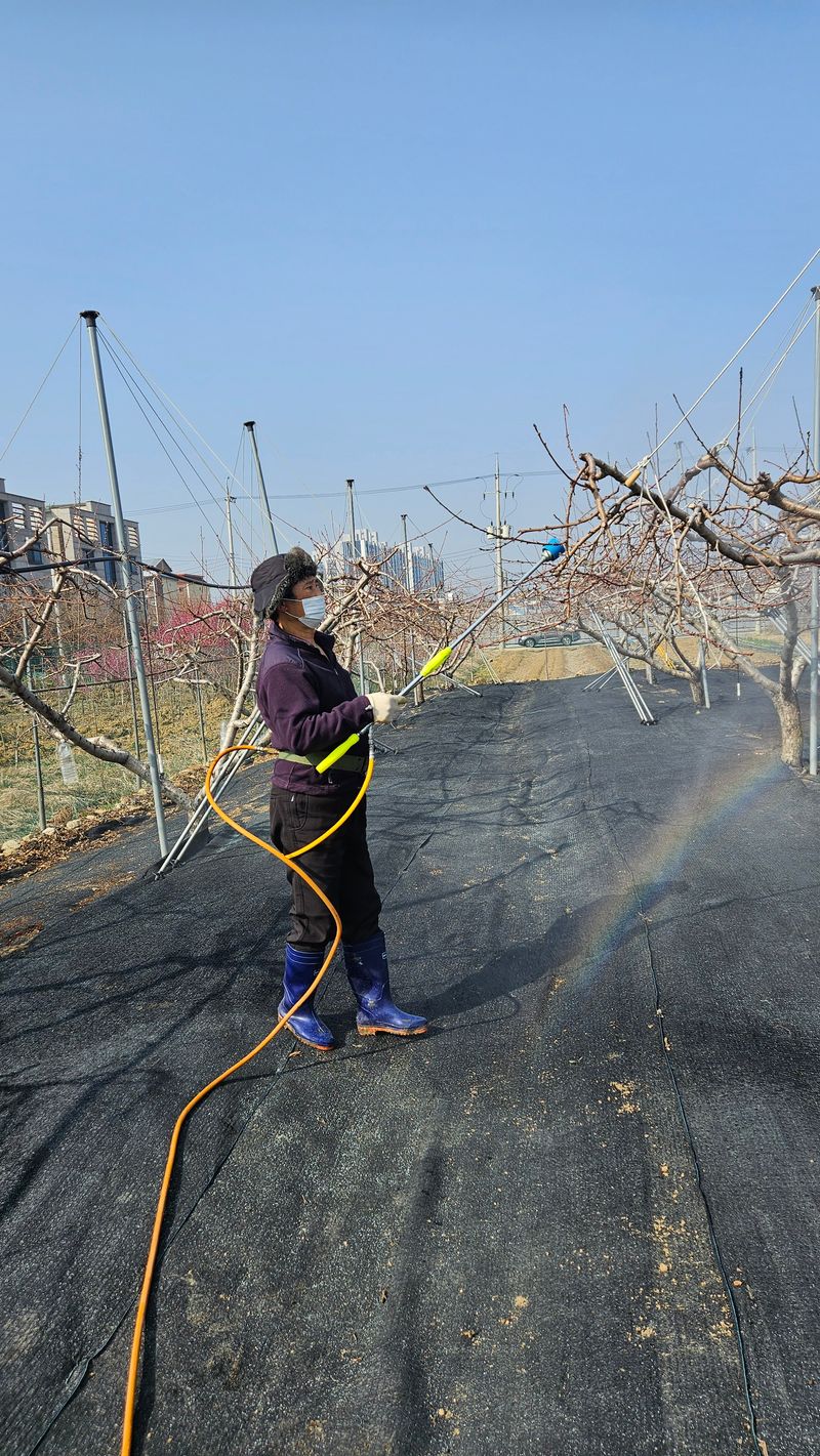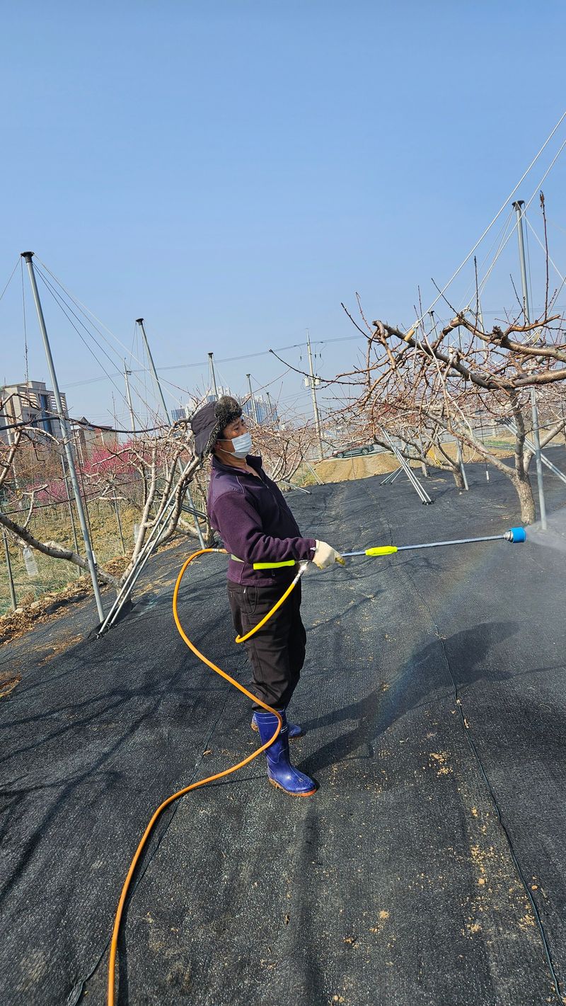 복숭아 화분수정약 살포 바람 불어서 흩날리는 현상