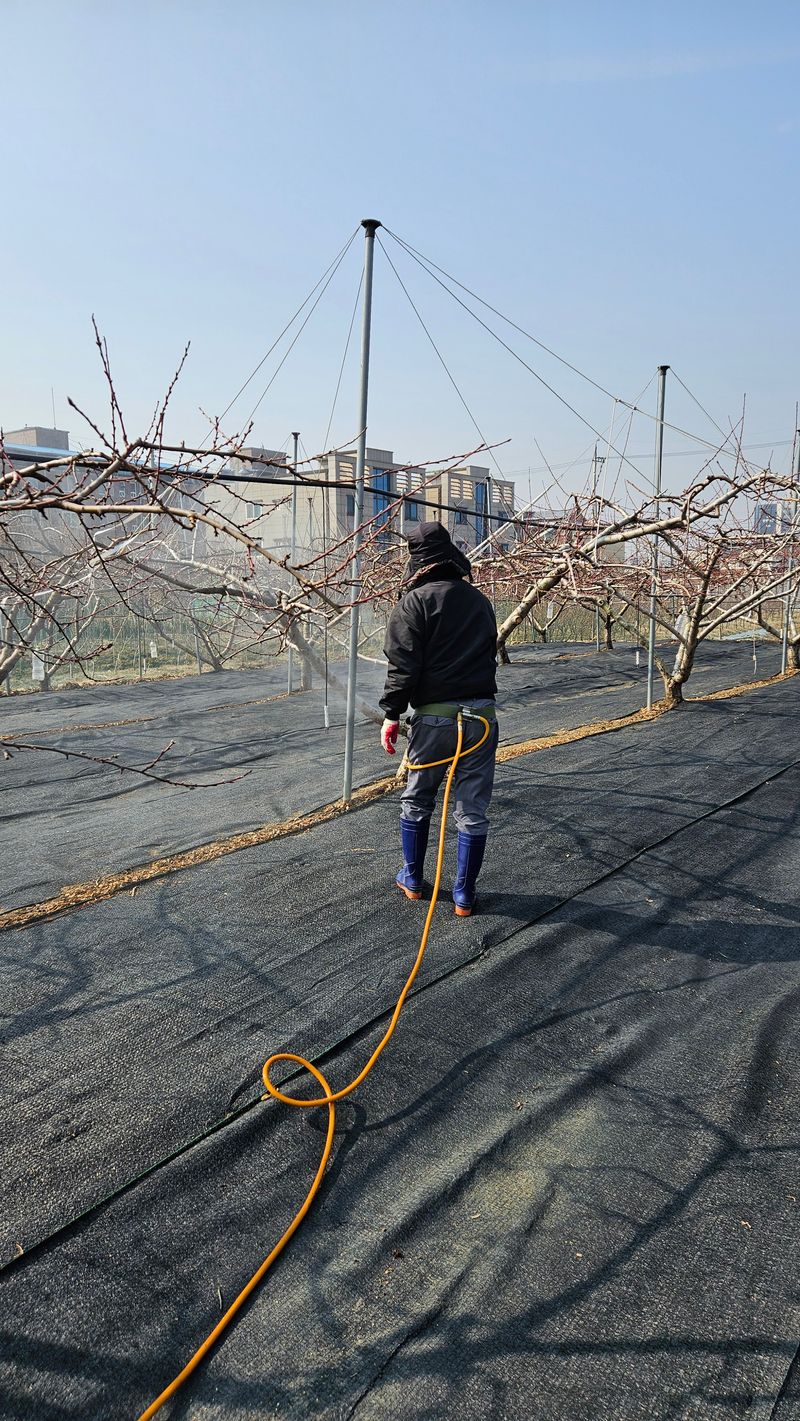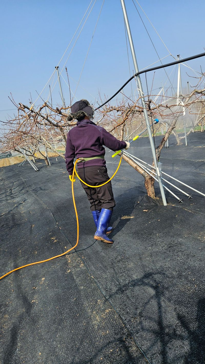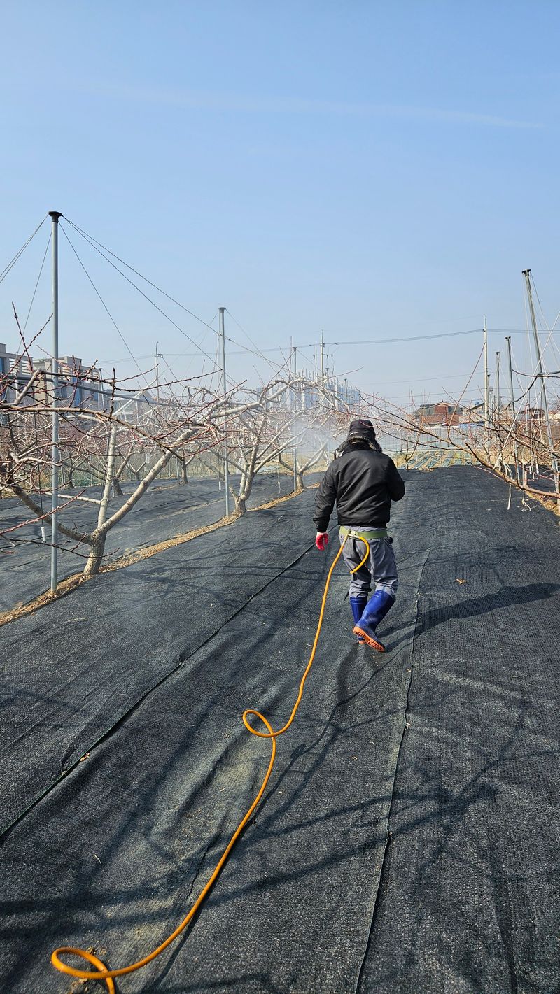 복숭아 화분수정약 살포 바람 불어서 흩날리는 현상