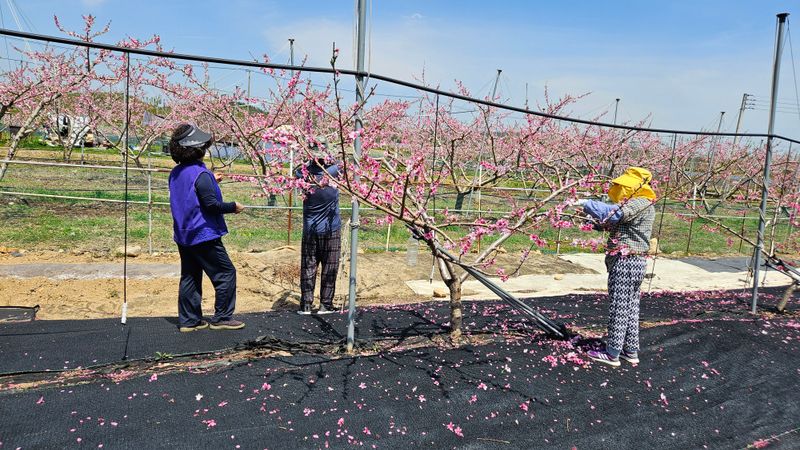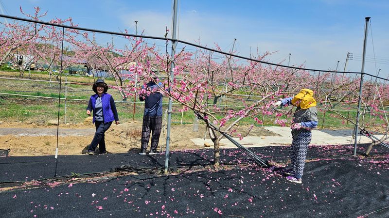 냉해 피해 신고 자두80% 복숭아30% 복숭아 자두 열매솎기
