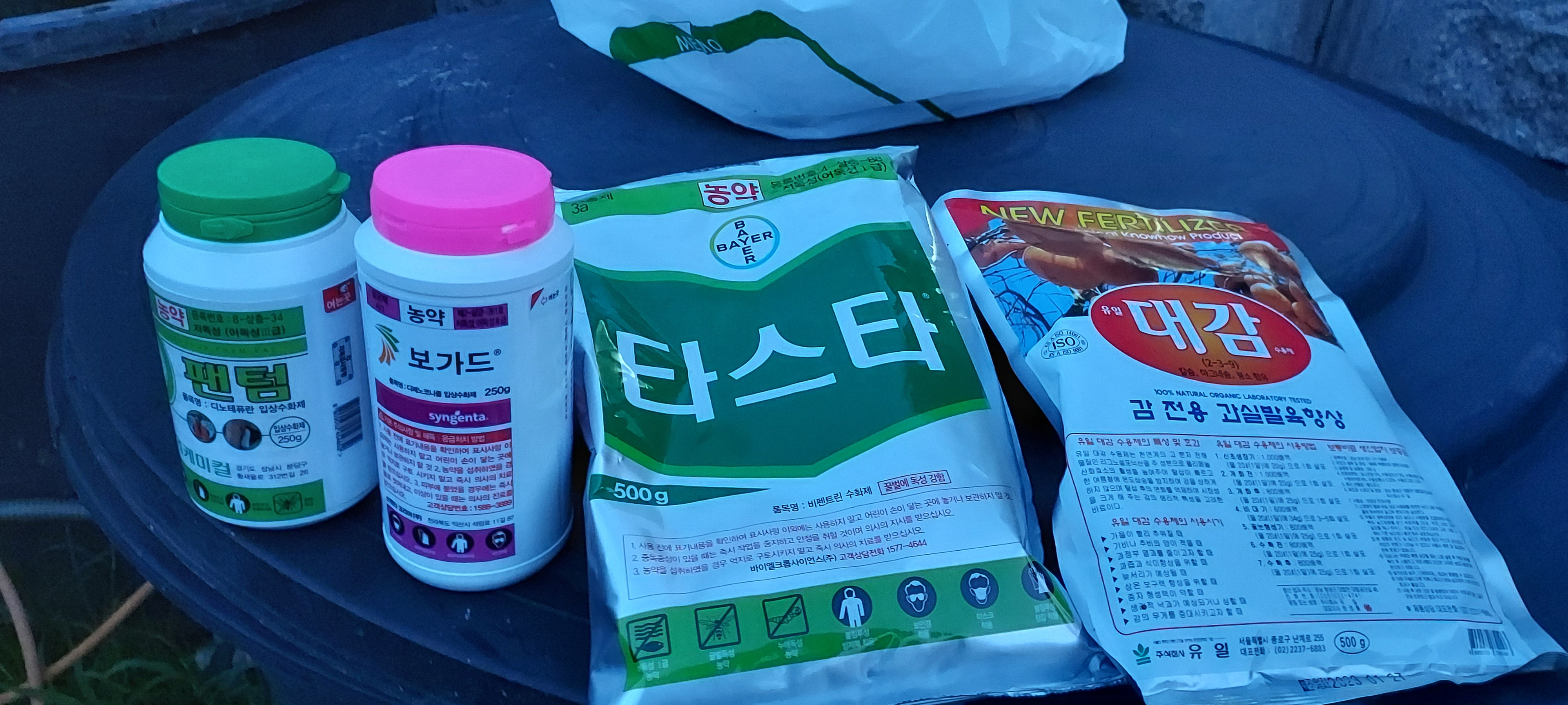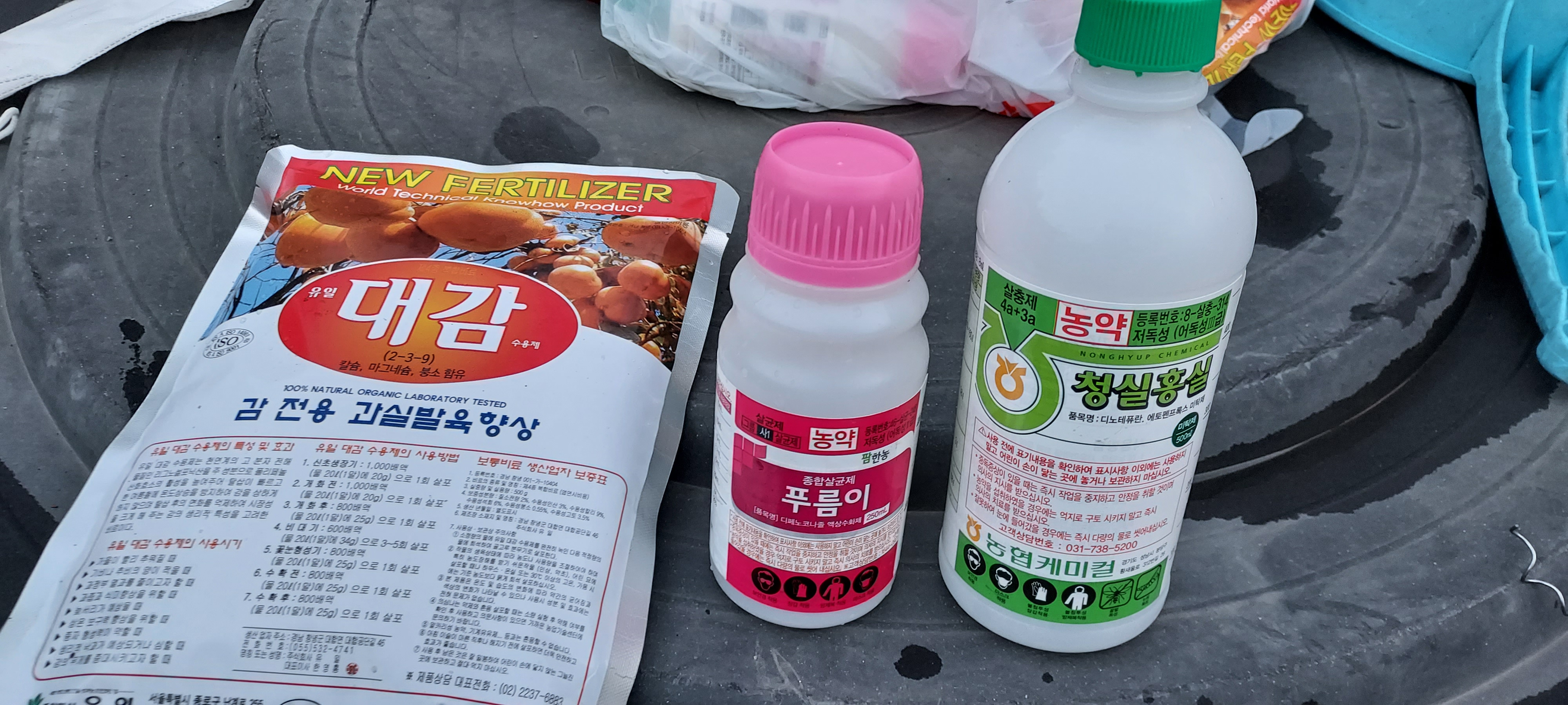 감나무 농약살포함 청실홍 살충제. 푸름이 종합살균제 대감 영양제