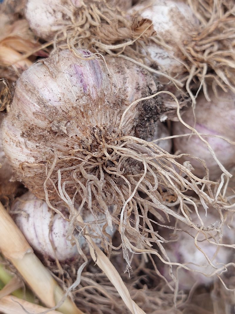 난지형 마늘을 수확하여 건조시킴