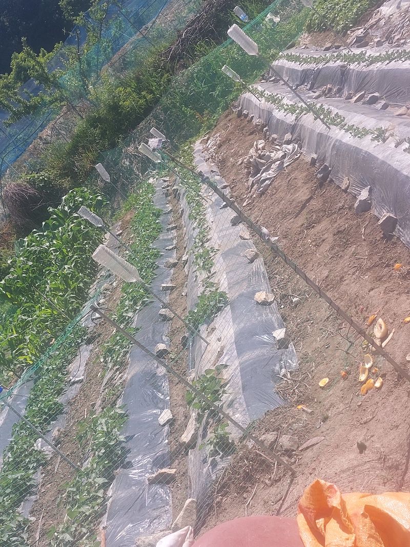 땅콩 오이 가지 옥수수에 요소비료주고 물 살포했습니다