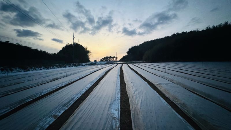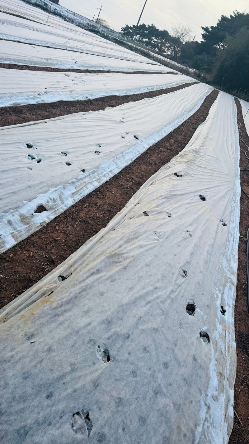 바람에 날린양파부직포덮기
