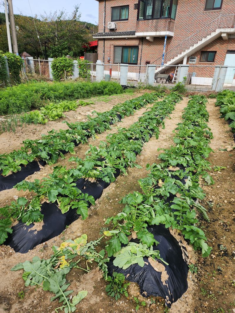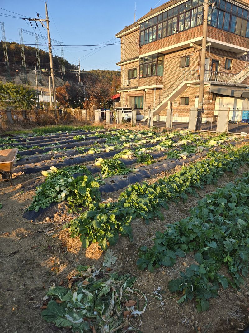 김장하려고 무우 배추 수확했어요 그리고 양파 마늘 심으려고 로타리치고 비닐 설치작업 했어요 아직 심지는못했네요