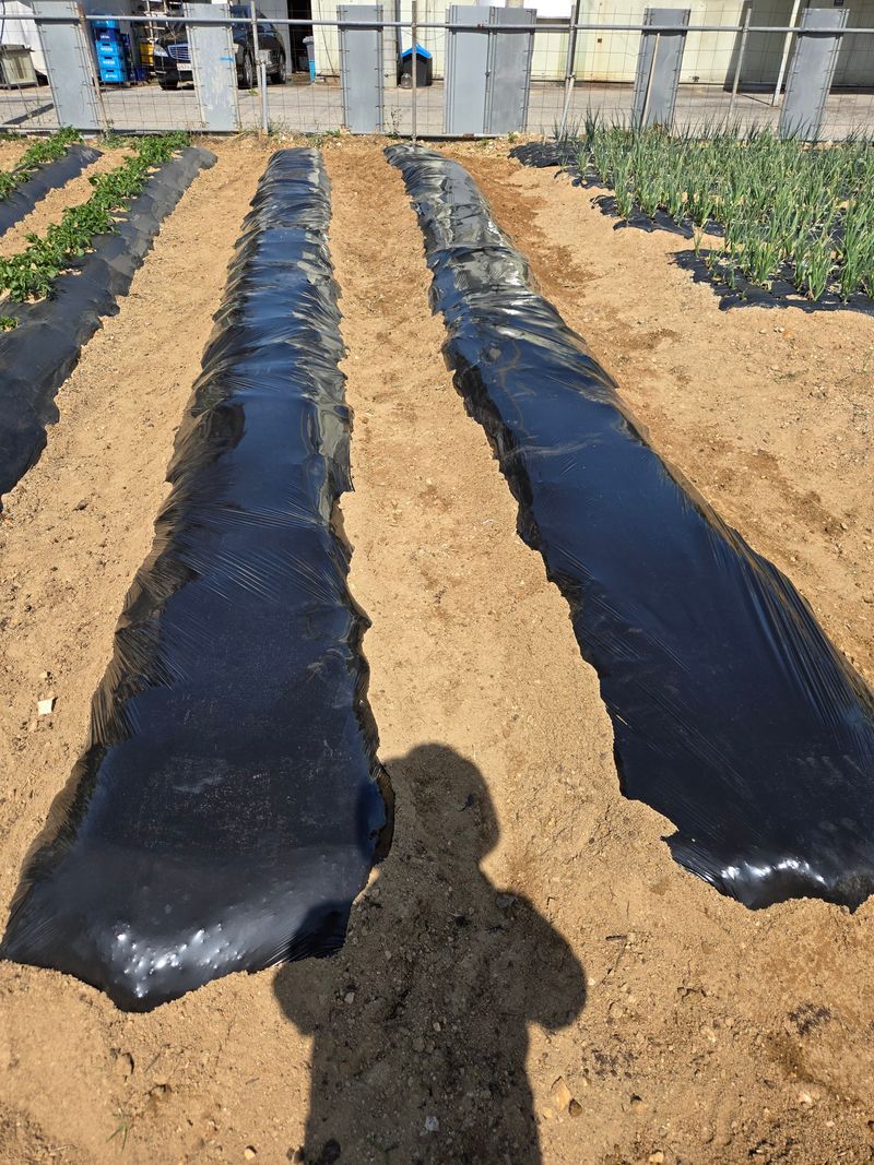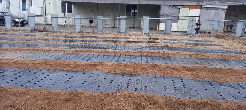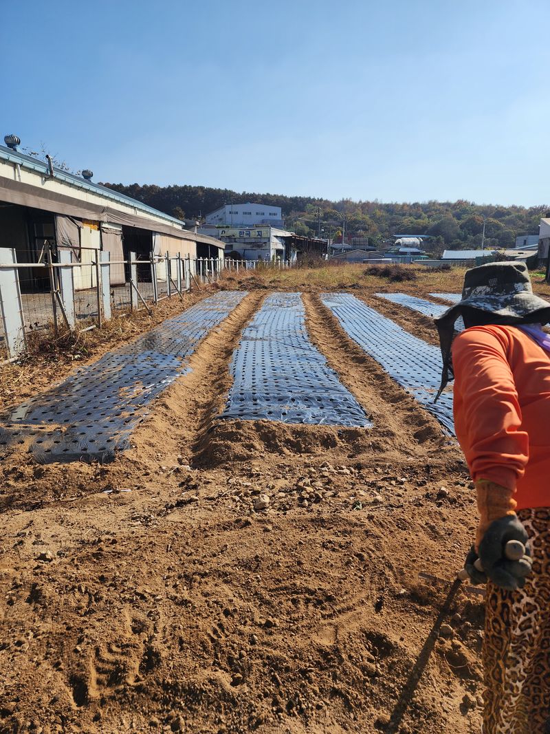 오늘은무우 배추 심을 두둑 많들고 비닐 멀칭하고 구멍까지펀칭 했어요 7곱두둑 작업했네요