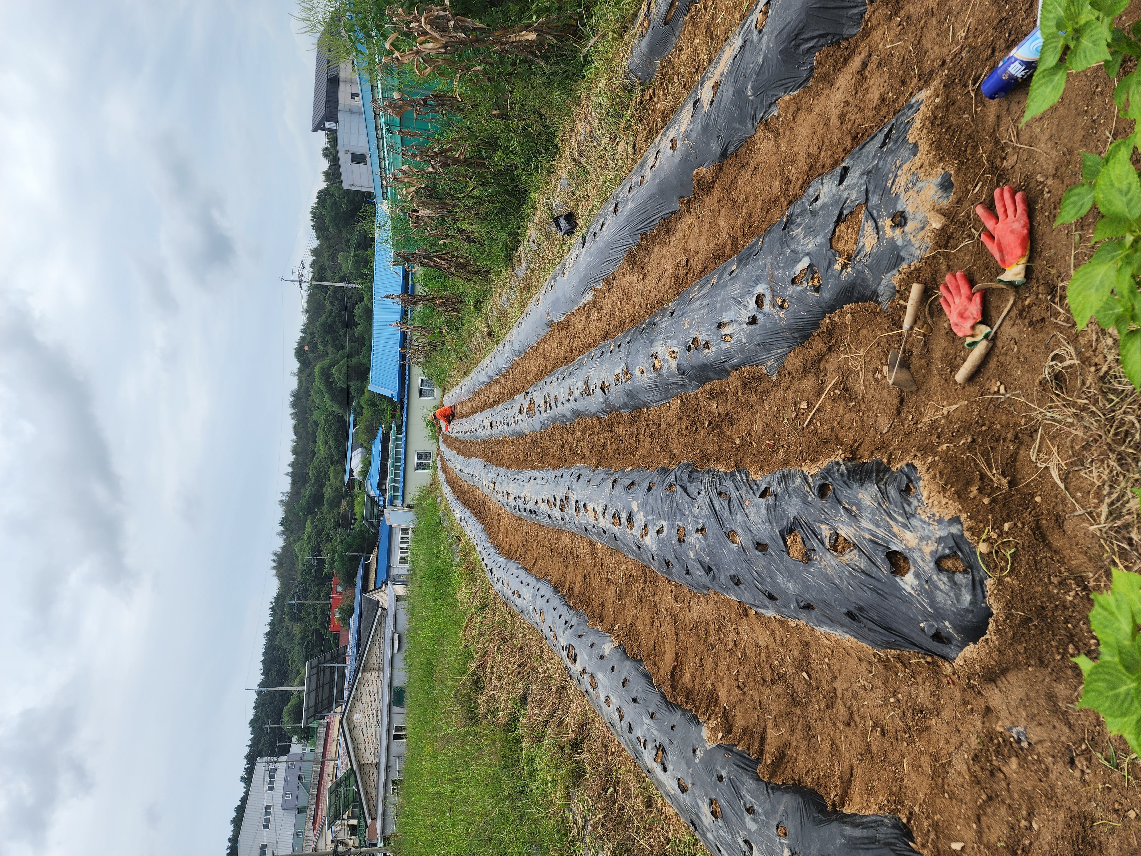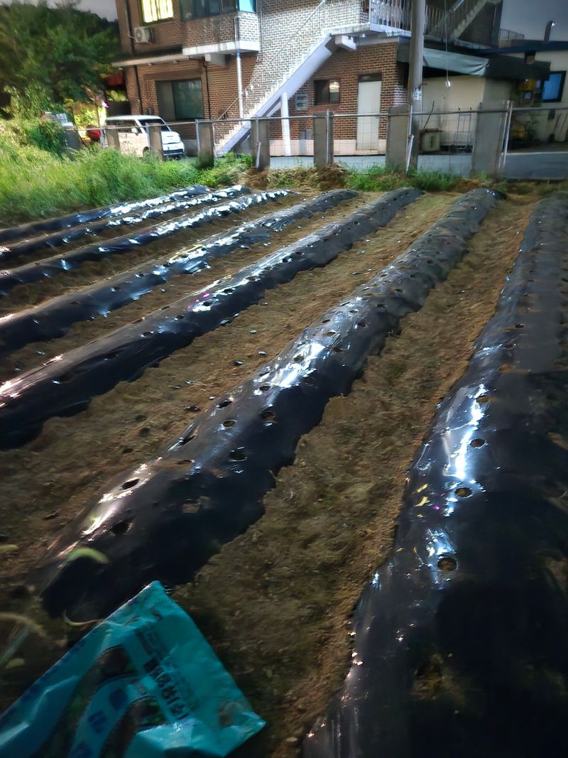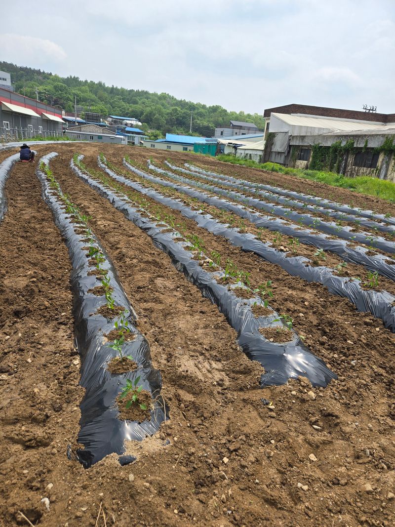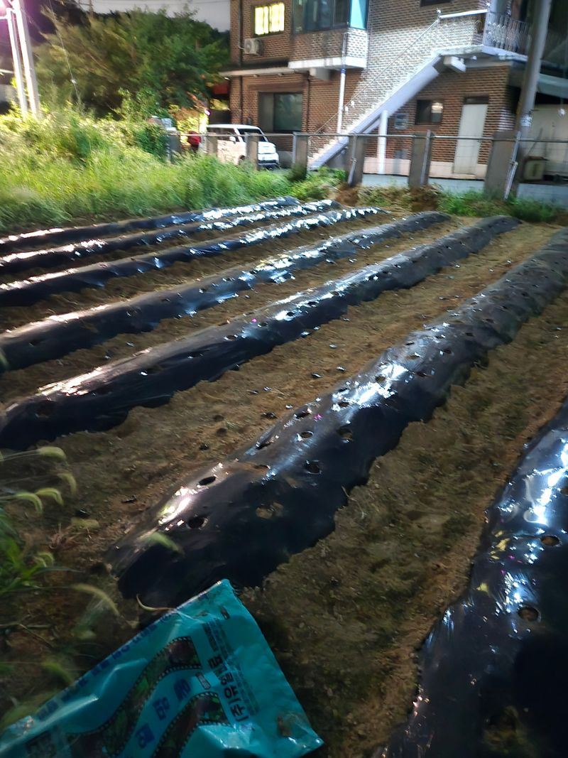 오늘도 들께 심고요 풀씨발화안되게하는풀약뿌렸어요 내일오후에 들께좀더심어야 마무리될듯합니다