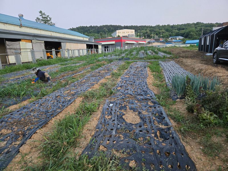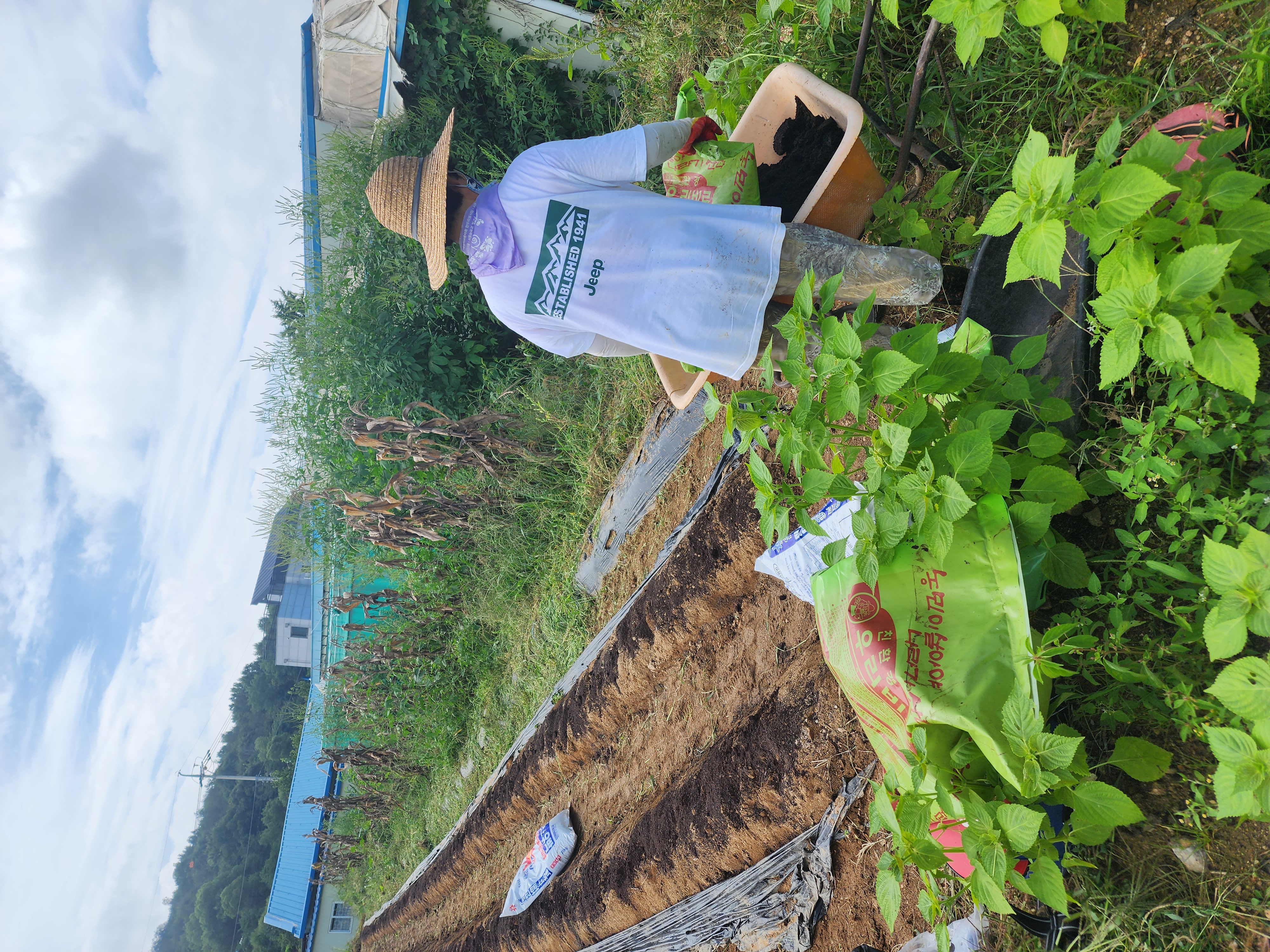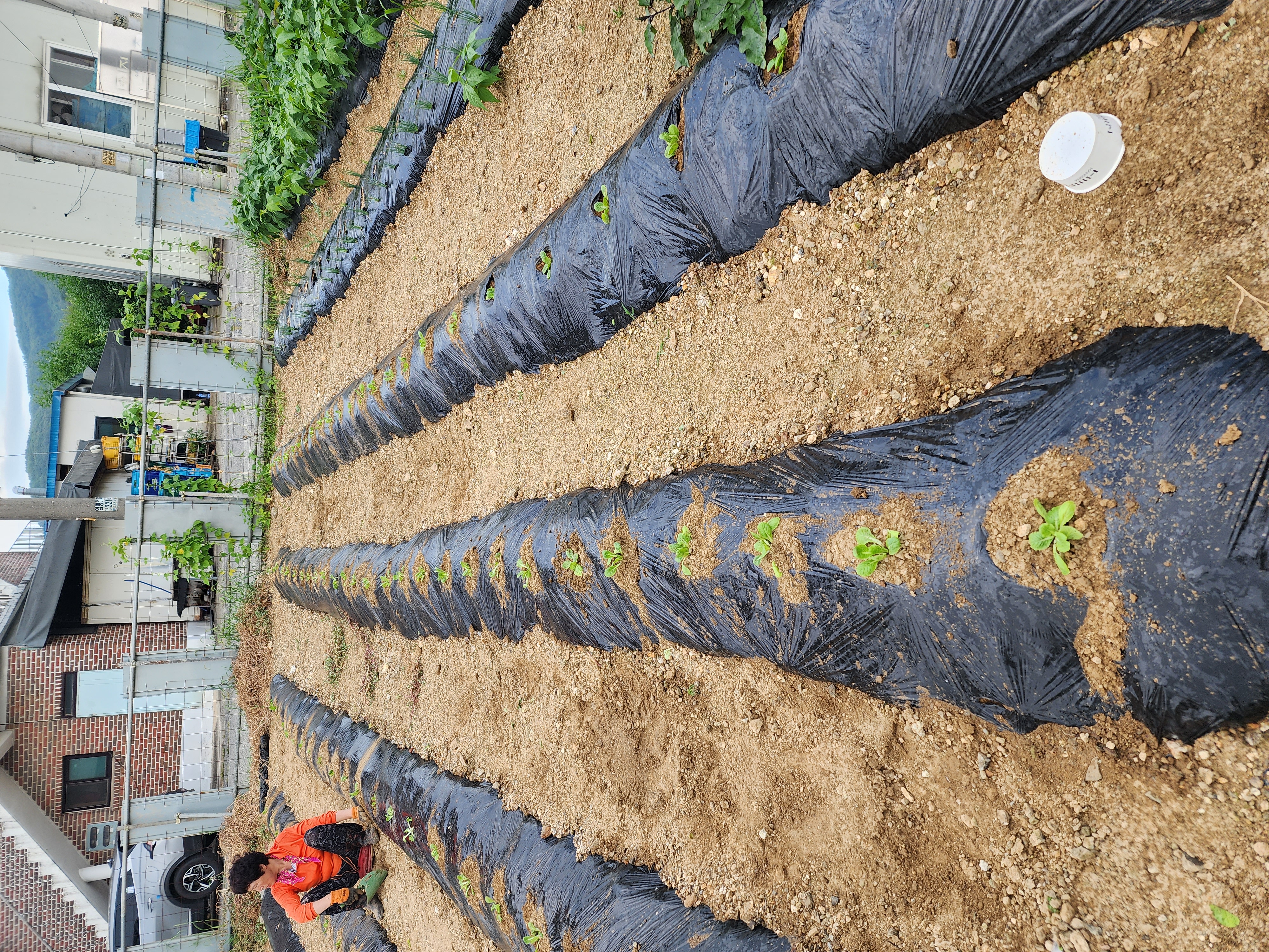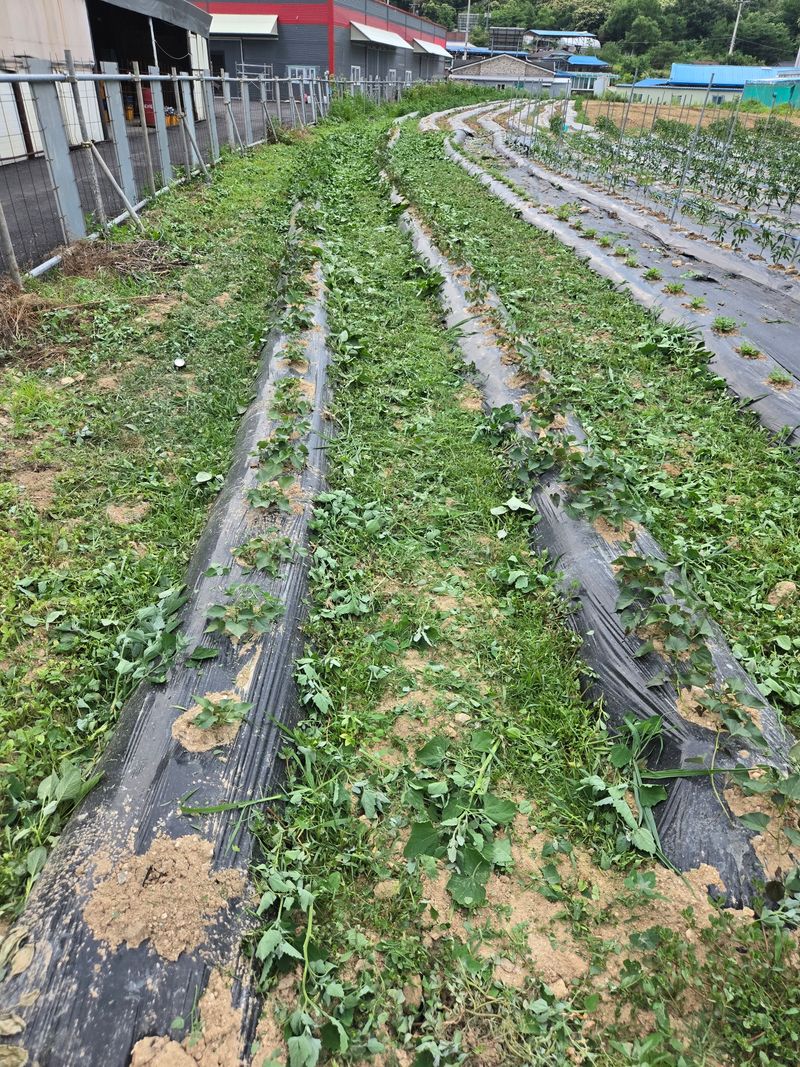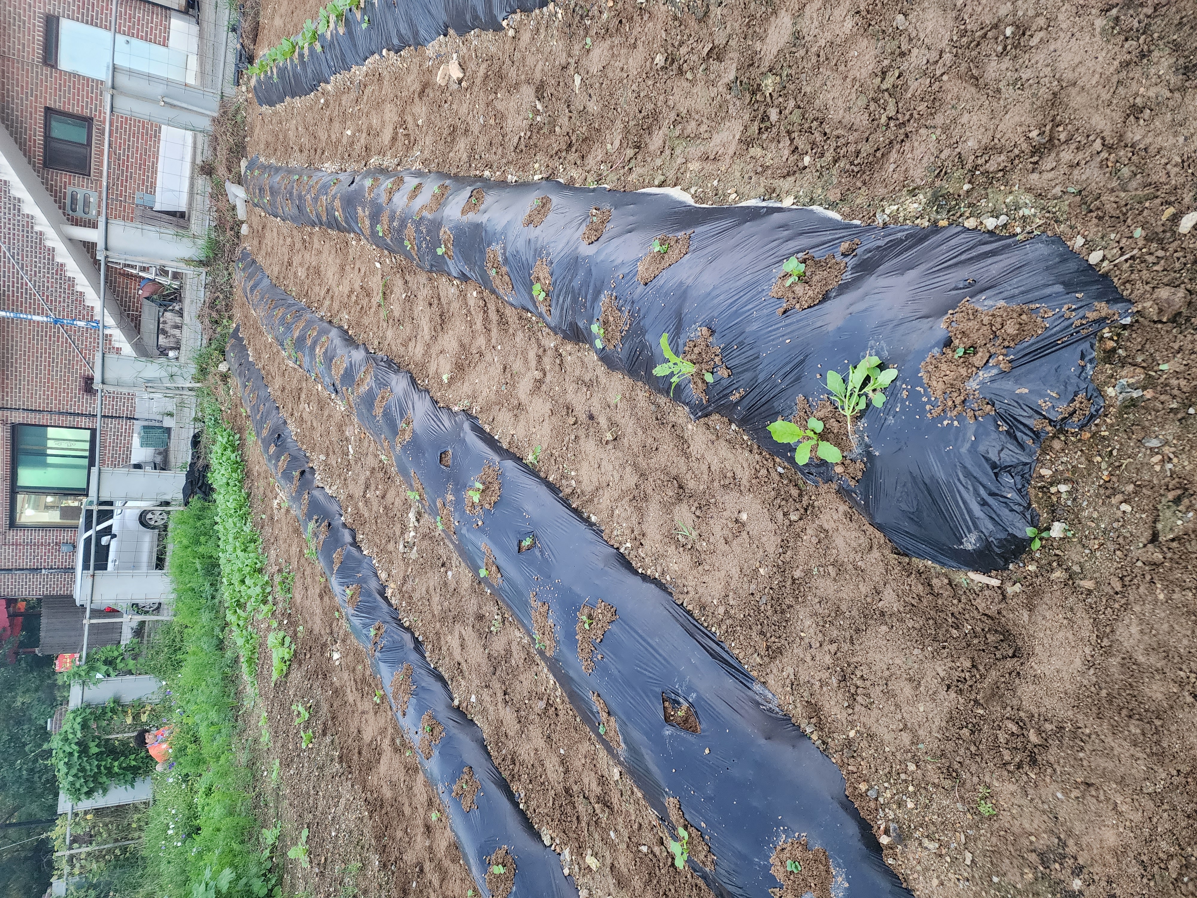 오늘도 들께 심고요 풀씨발화안되게하는풀약뿌렸어요 내일오후에 들께좀더심어야 마무리될듯합니다