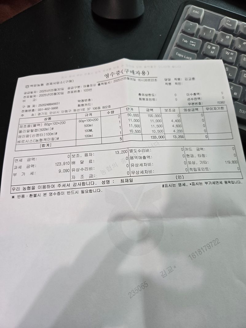 분무기 대 고장 구매 1개 분무기충전기 고장 구매 1개 들께심을밭 로타리치고나면 풀발화안되게 뿌려주는 대브리놀골드 6봉 구매 오늘오후에 고추밭 농약 주려고 준비합니다