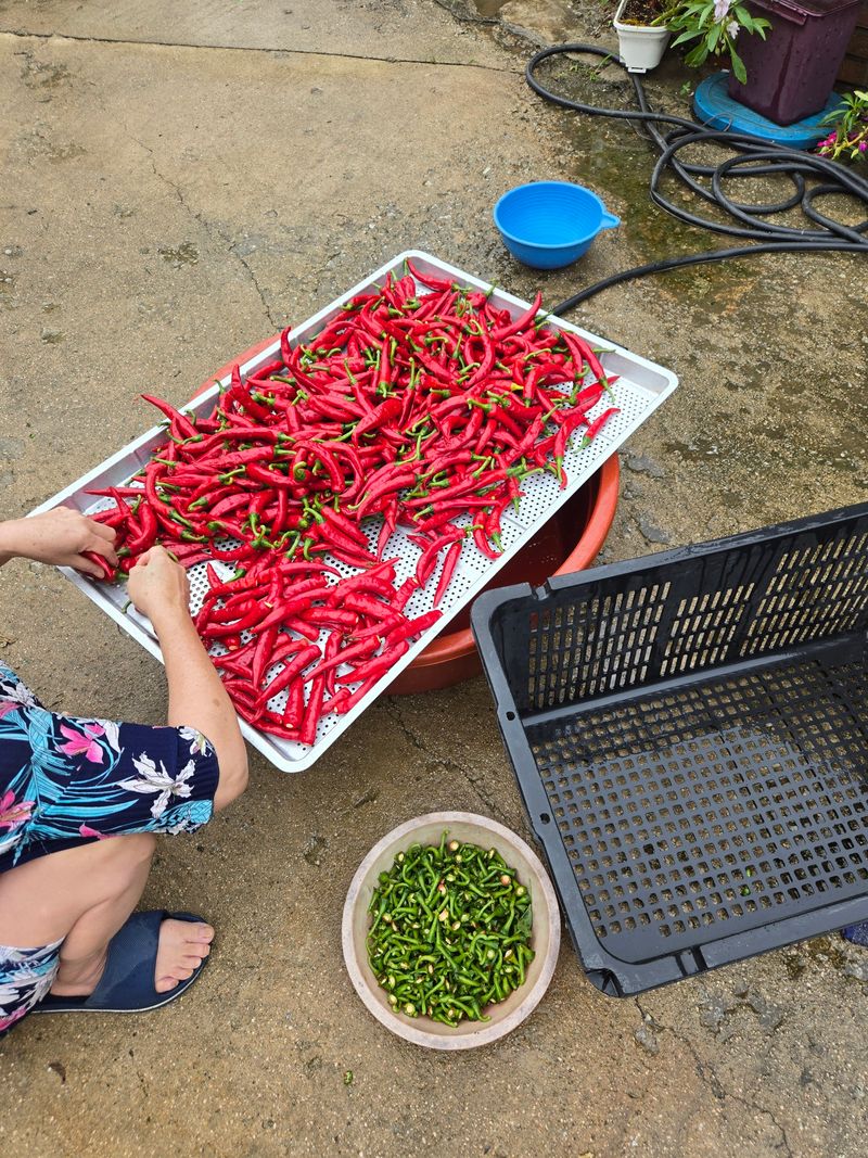 오늘은 고추 수확 하고있 고 하우스설치 고추건조 하고있어요 내일은 참께수확 예정 입니다