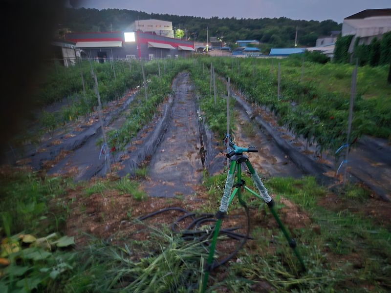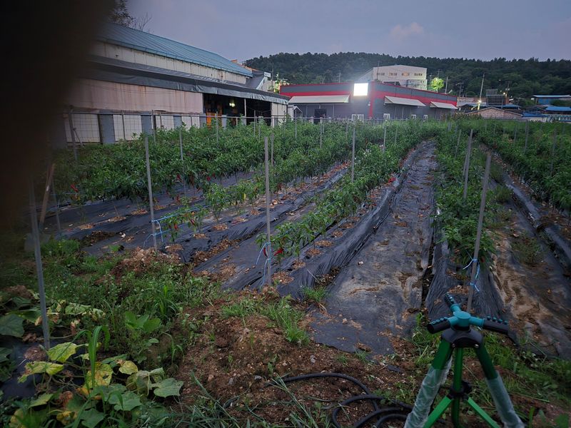 오늘도 고추 밭에 물 주고 있어요 오후4시에 왔는대 저녁9시까지는 물주고 내일은 농약 주려고요