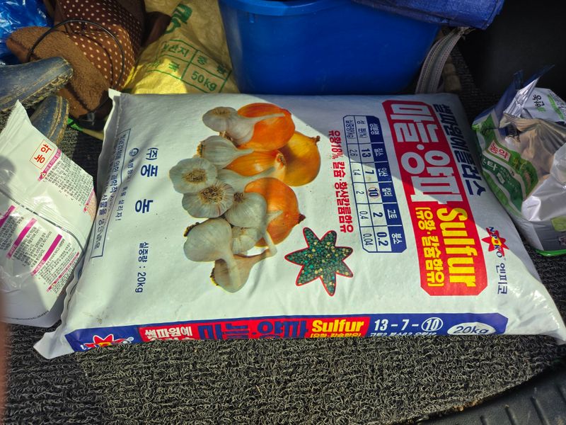 오늘은 마늘 심으려고 퇴비뿌리고 토향살충제뿌리고 비료뿌리고 굼배이 살충제 뿌려네요