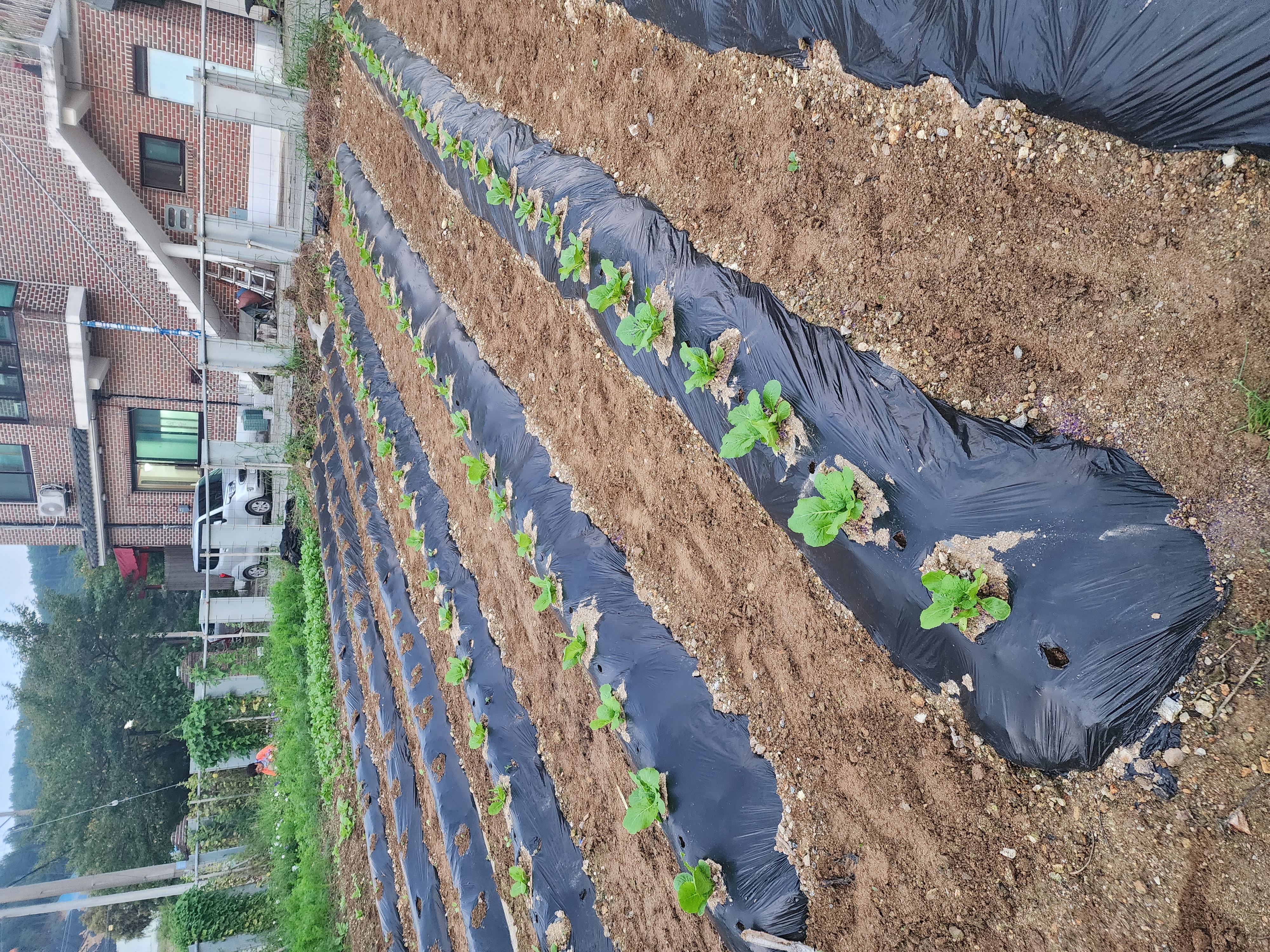 목요일 김장배추. 심을려고 두둑작업 비닐 멀칭 작업합니다 너무더워서 오전6시부터 작업하다 11시경작업끝네고 오후4시경 다시작업할려고 쉬고있어요