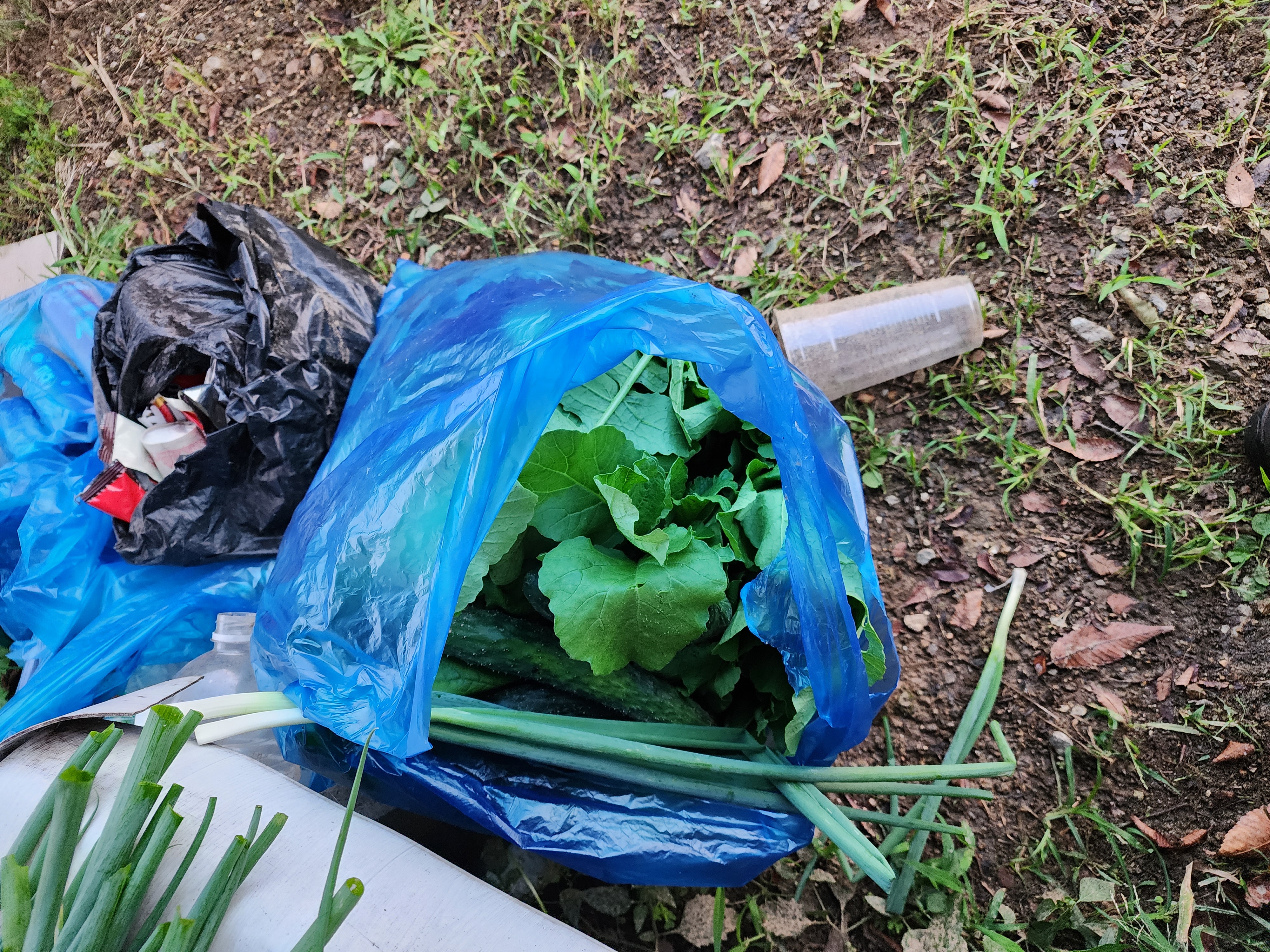 오늘은 무우 살충제 살포작업 쪽파 살충제 살포했 네요 고구마줄거리 따왔네요 애호박도 5개 따오고 가지수확 대략50개정도 고구마 수확하기전 몄 개 케봐는대 고구마가너무크네요 고추수확끝나고 고추대 다뽑았 습니다
