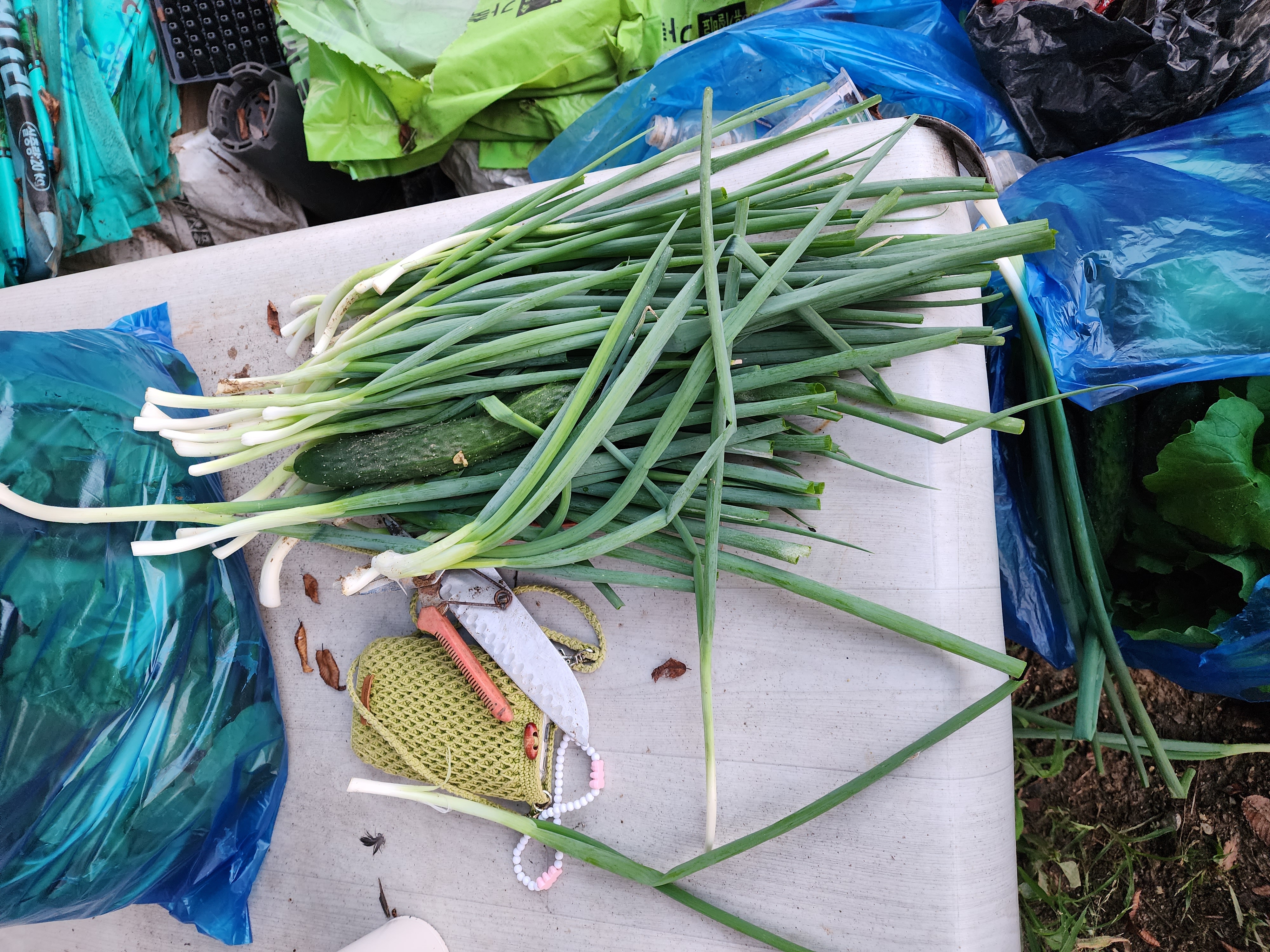 무우하고 쪽파 일부수확해서 무김치 담구고 있어요