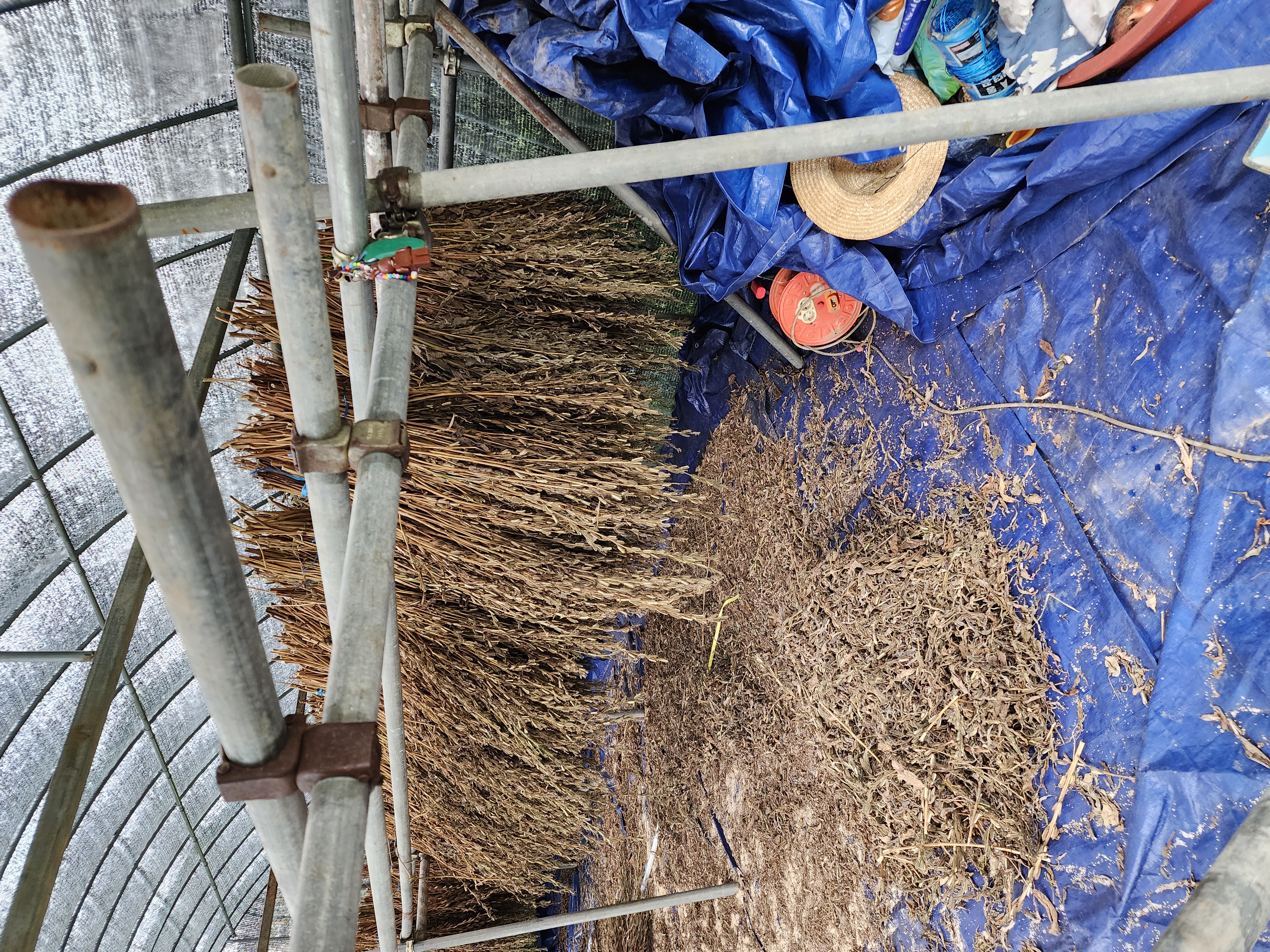 3일간 참께 수확해서 비닐하우스에 거꾸로메달아놓았네요 오늘은 고추 수학하고 가지수확하고 고추밭 농약주고 들께밭 풀 예초기로 작업했는대 들께밭 풀은. 4일정도는더 예초기 작업해야될거같어요 너무더워서 오후에만가서작업하니까요