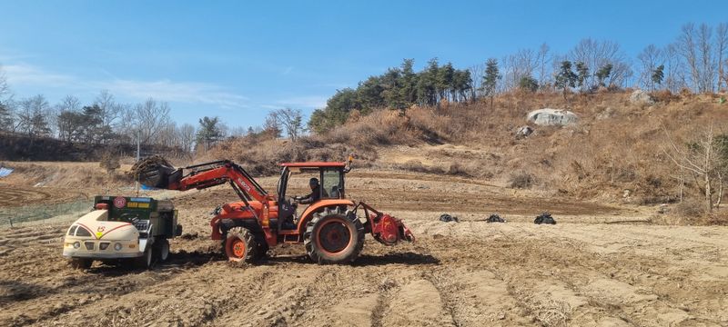 생강 예정지 밭에 석회 살포 산소 카소론 살포 쥐눈이콩 배송 생강 종자신청 보조 비료 신청