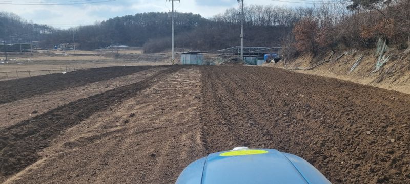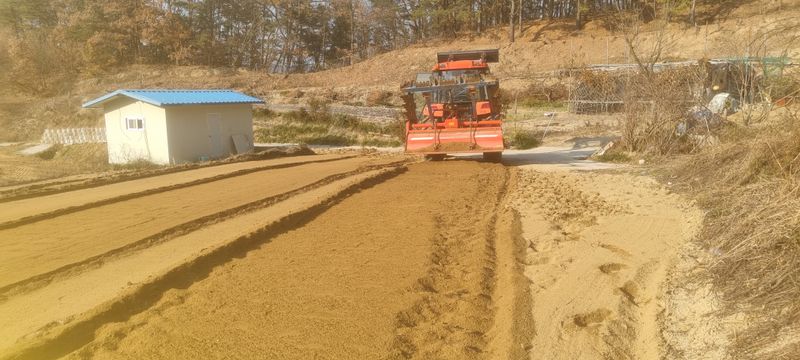 거름살포 준비 살포기 임대 일부 밭 진입 못함 . 옆집 창고 화재