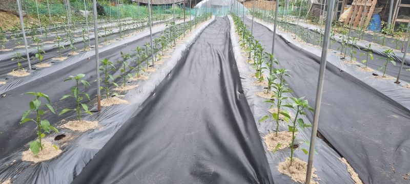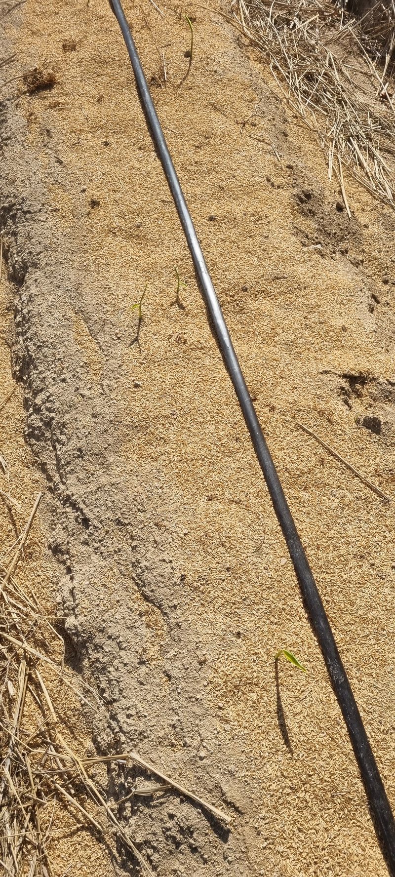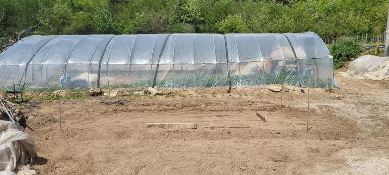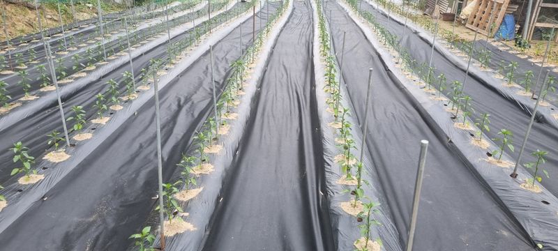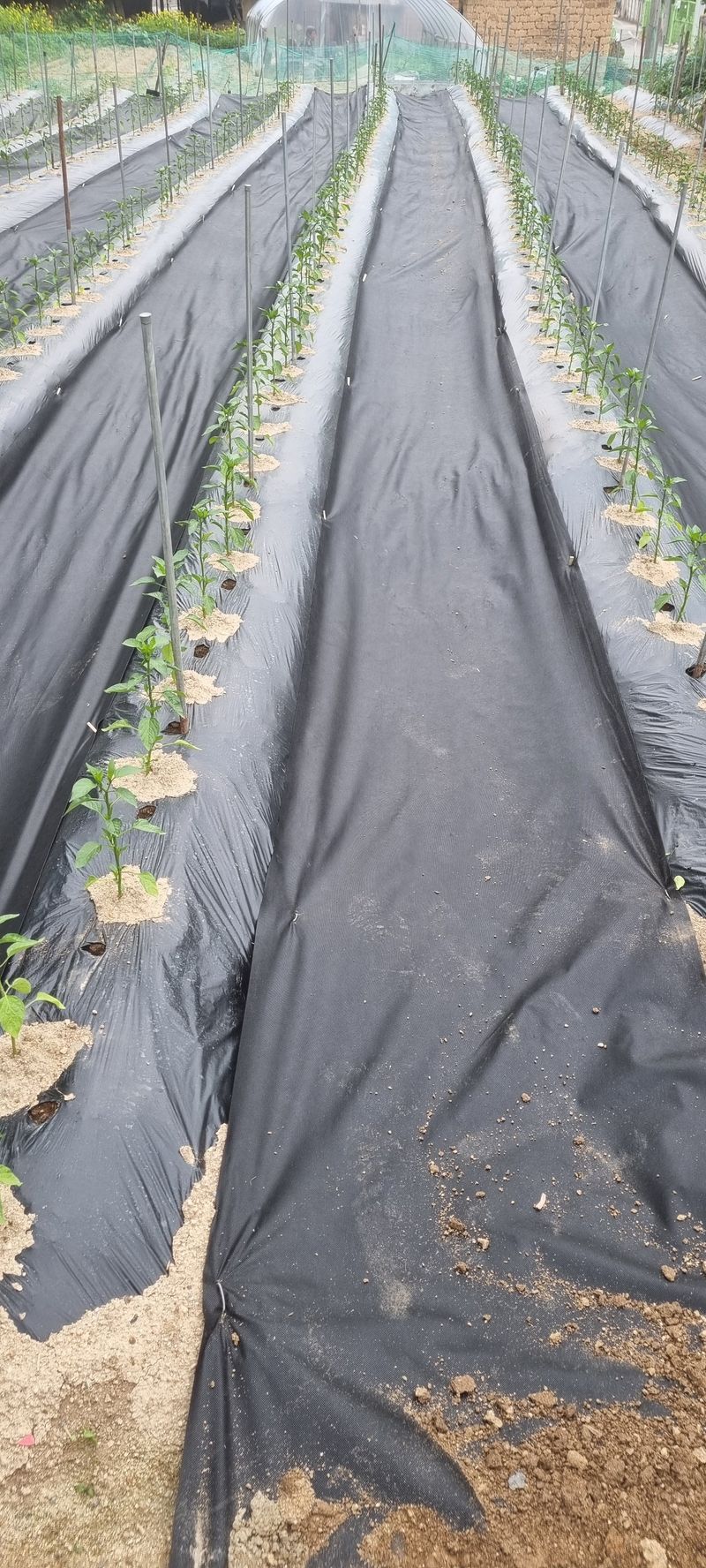 밭울타리 고리니망 작업. 햄프파종. 비료 비닐 수령