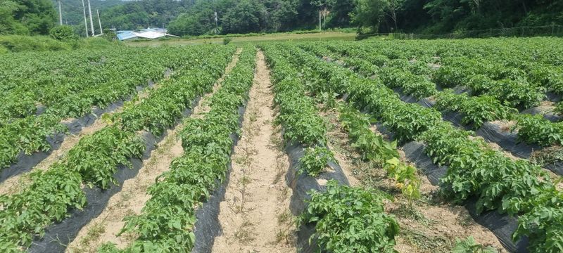 감자캐기 들은 너른데 수확은 작년 반도 안되니 놀라고 가격도 지지부진한 이 현실에 지친다.