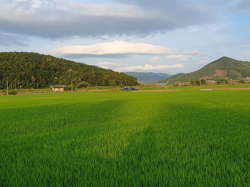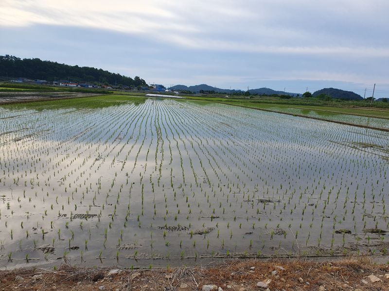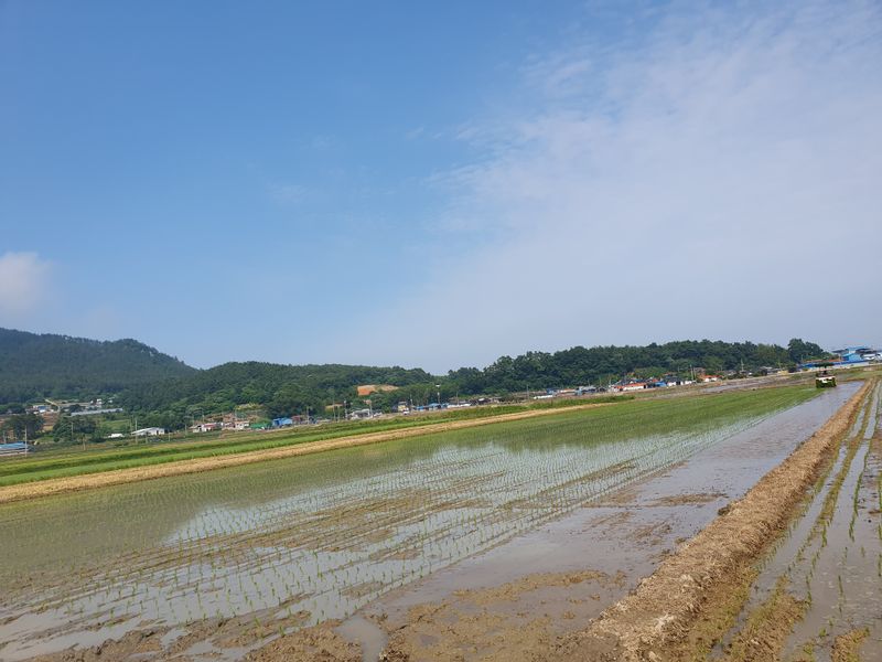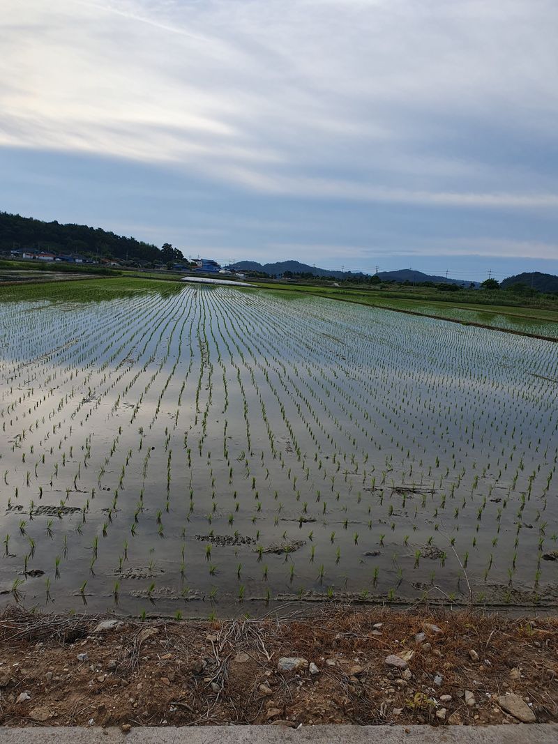 모내기 했습니다 잘 자라기를 바라며 물관리 철저하게 해야 될것 같아요 ㅋㅋ