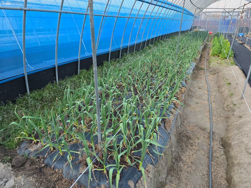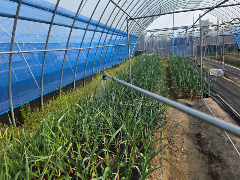 유실수 미생물 살포 물 1,000리터 미생물 25리터 마늘, 대파, 양파=> 잎마름병. 고자리파리 농약살포