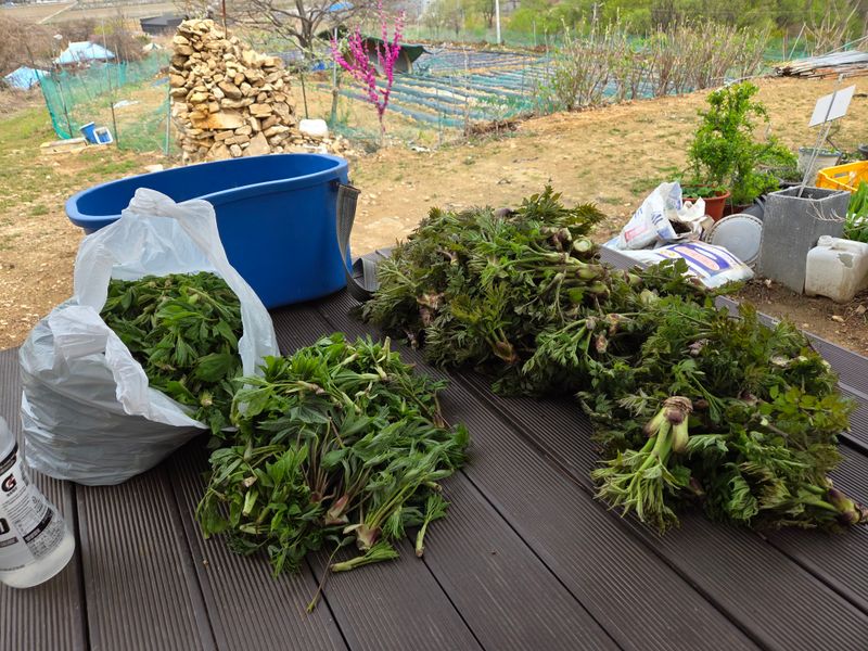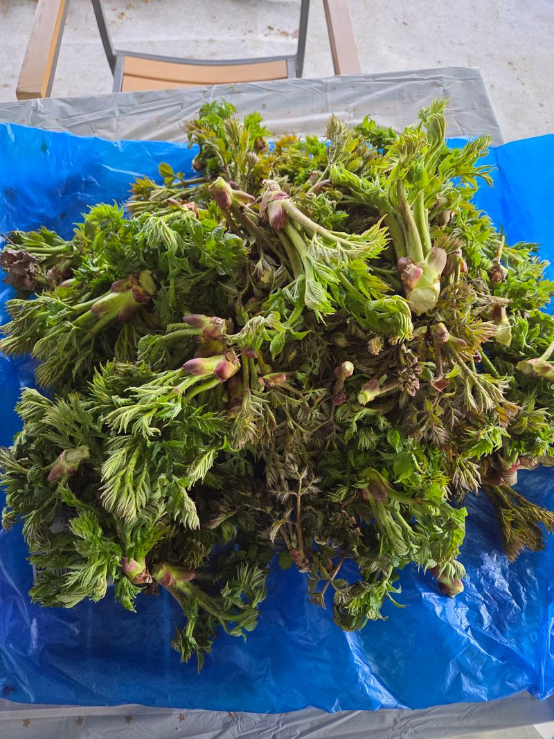 두릅수확 두릅수확해서 시장에 가서 2.8kg 4만원 받았습니다