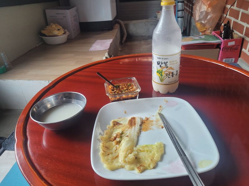 오늘은 우천으로(장마)쉬면서 막걸리에 배추전으로 내일을위한 충전을 하고있습니다