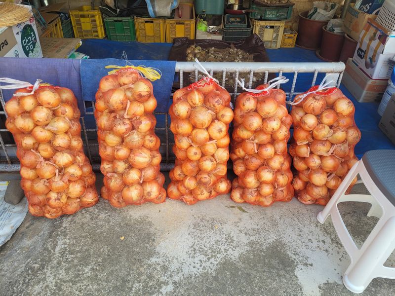 오늘은 양파망에 담았습니다 양파 시세가 좋아야 좋은디?