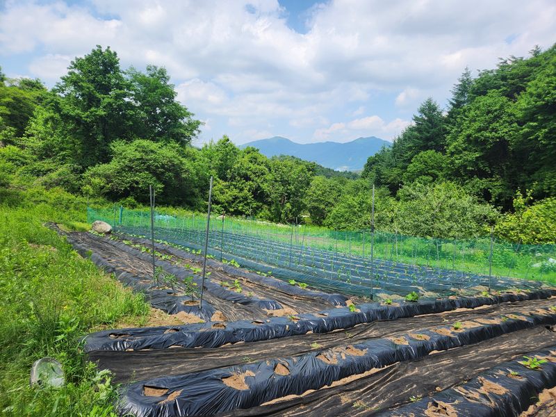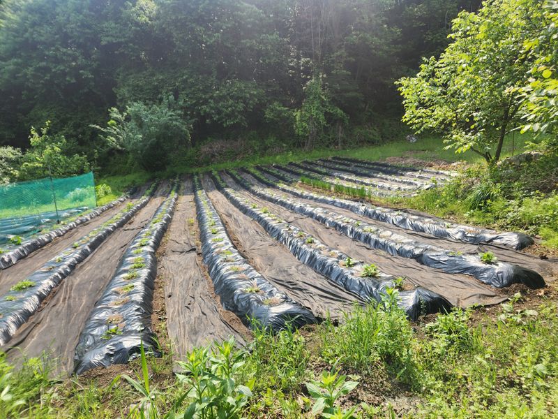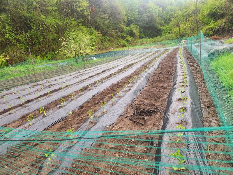 고춧줄도 매고 야콘밭에 풀도 뽑았답니다ㆍ 참 들깨씨도 뿌리고요 들깨씨를 뿌리면 새들이 다 주워 먹어서 망을 씌운답니다