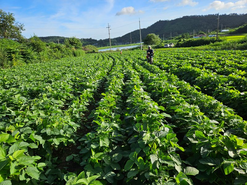 토란 붂돋기,감자붘돋기 웃거릉NK주기 도라지 옮겨심기 콩 받두룩제초제하기 칡 제초제하기