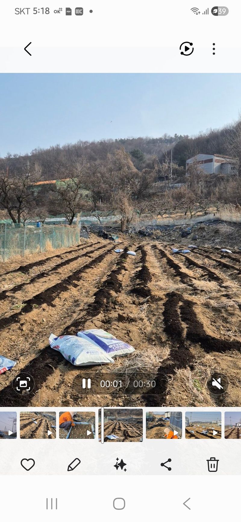 마늘비닐제거후 복합비료 시비 채소밭 멀칭