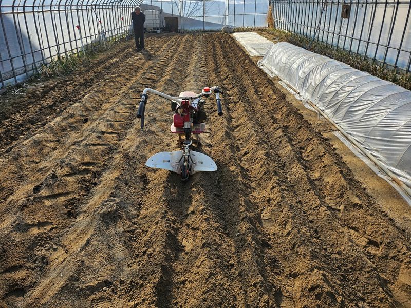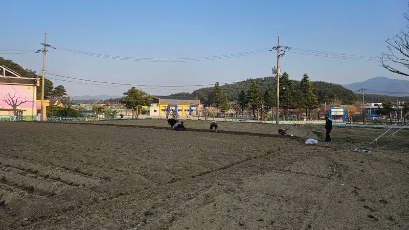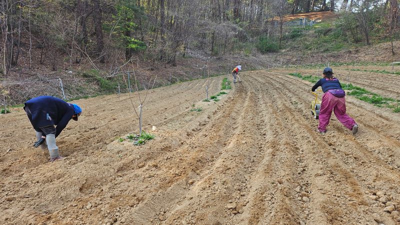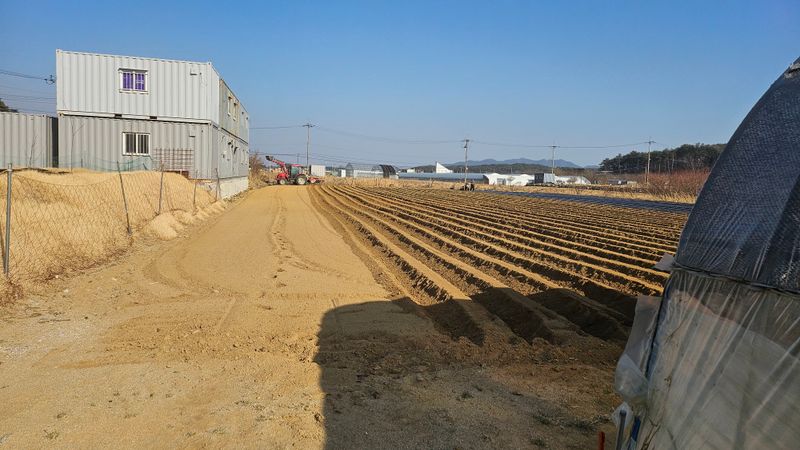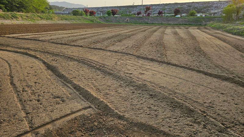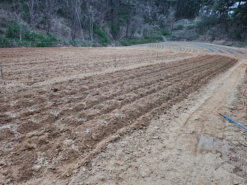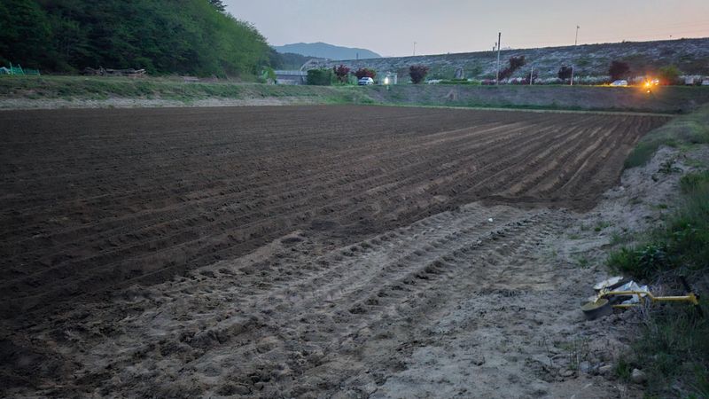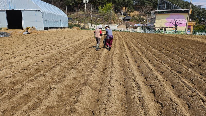 감자 파종 준비하기 감자비료, 토양살충제, 유박 거름 살포후 로타리와 이랑 만들기 했습니다..