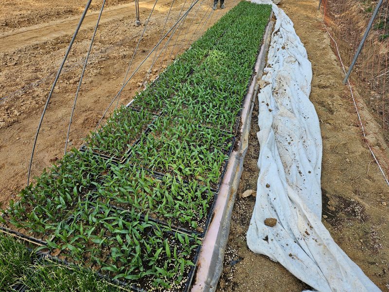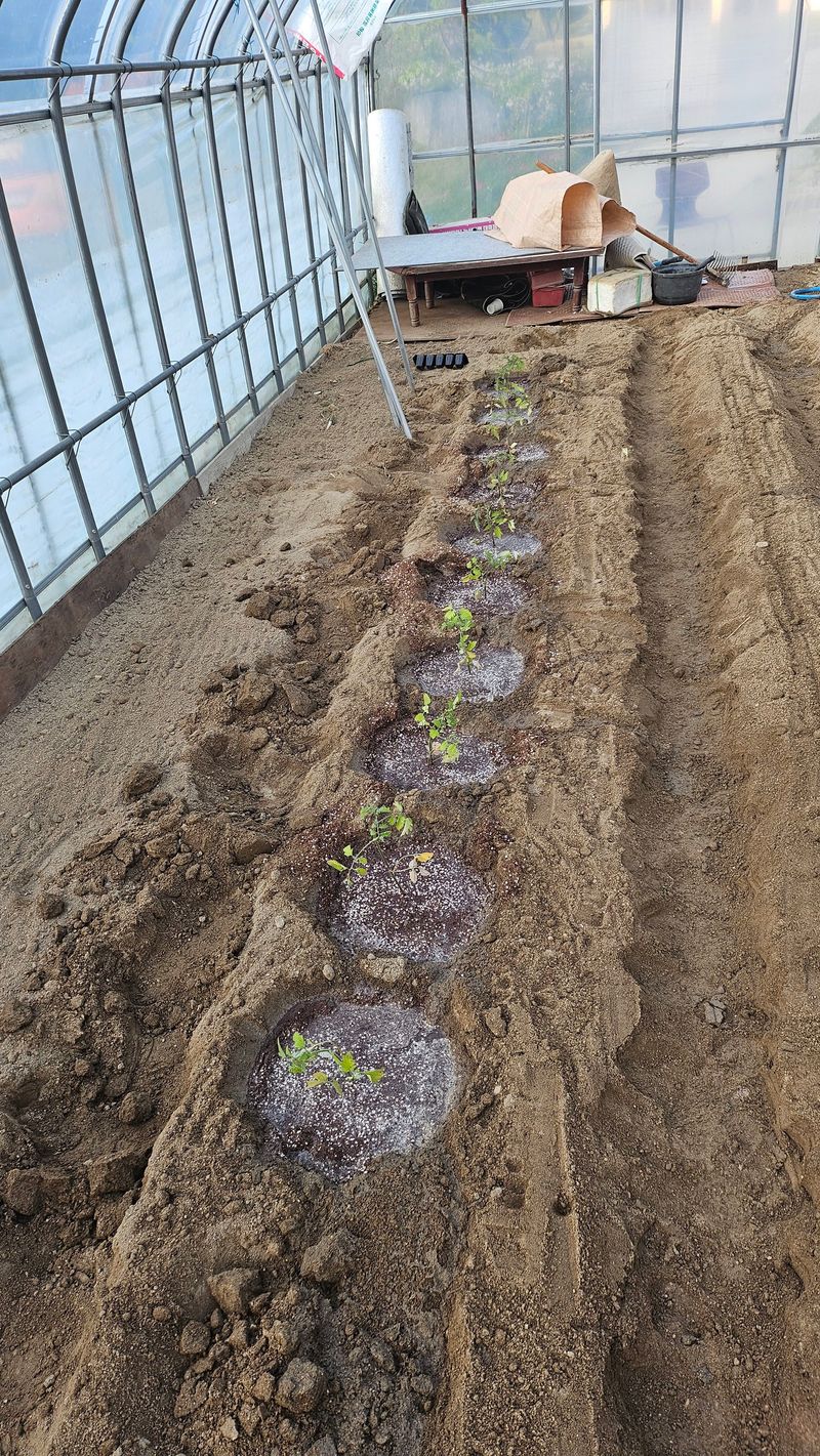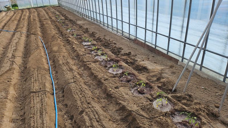 방울토마토 및 일반 토마토 모종 하우스에 심음