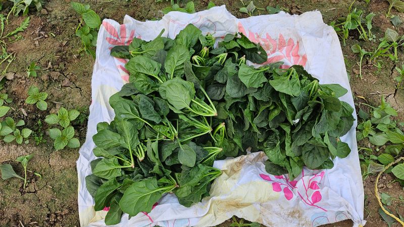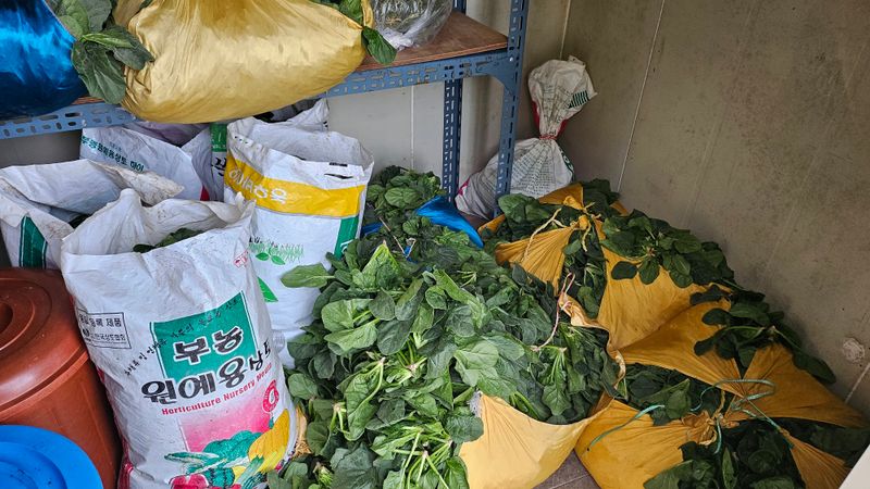 시금치가 많이 커서 한번에 수확해서 저온저장고에 보관..
