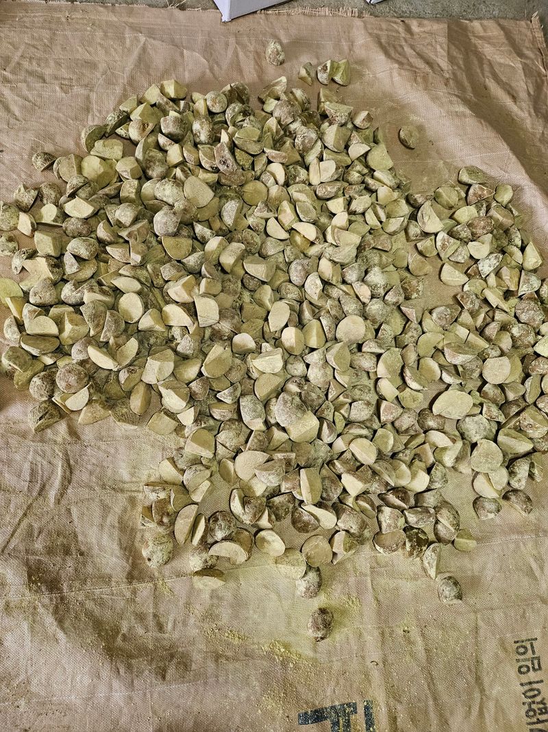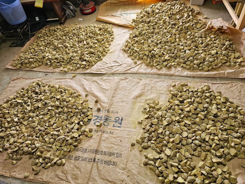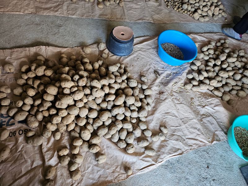 저장한 감자(수미,두백,설봉) 심을준비 했습니다