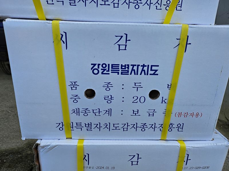 오늘 주문한 씨감자 (수미, 두백)가 왔네요.. 수미 12박스 주문했는데 3박스만 왔네요..ㅠ 수미가 없어서 두백이로 3박스 받았네요..ㅎ