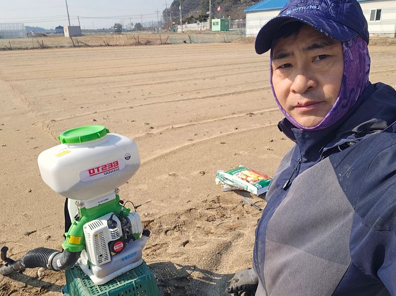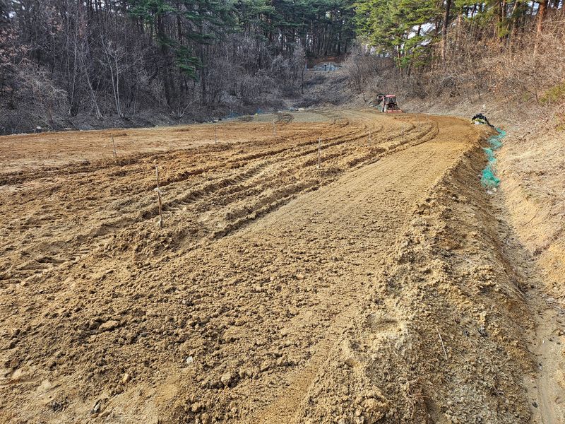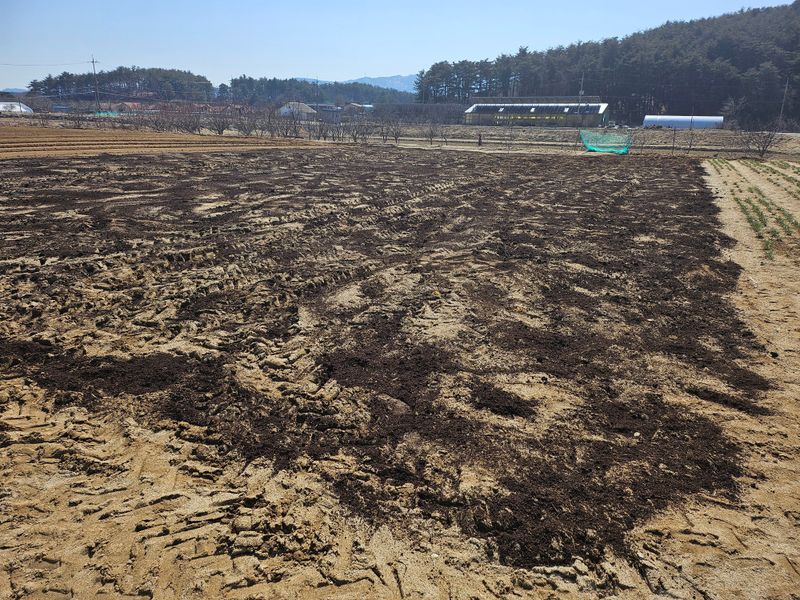 당근 심을준비.. 비료3포살포, 심마니 4포, 퇴비 20포 살포후 로타리업