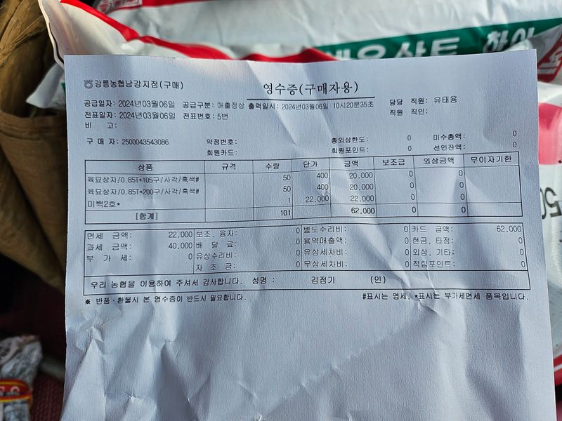 감자 조풍 심기전 준비물 퇴비 및 비료 준비완료