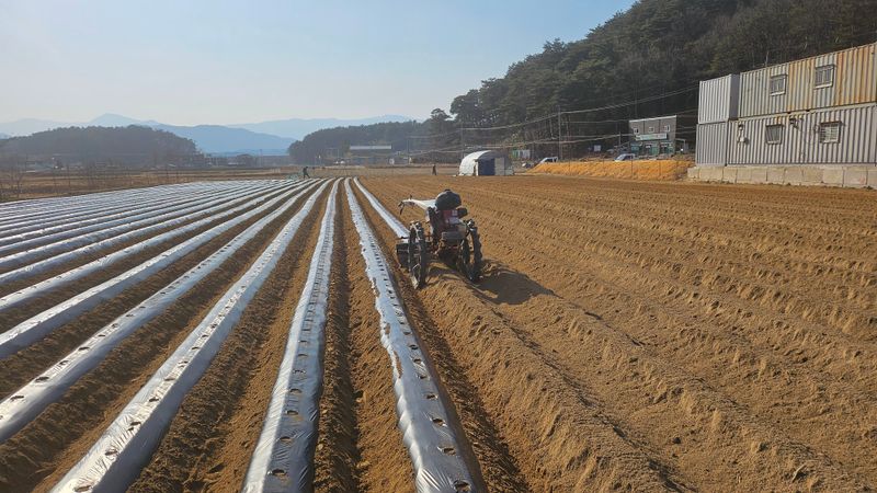 감자 토양살충제 치고 로타리 및 골파기후 비닐피복 함
