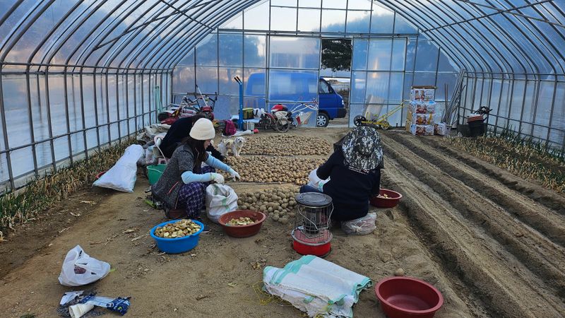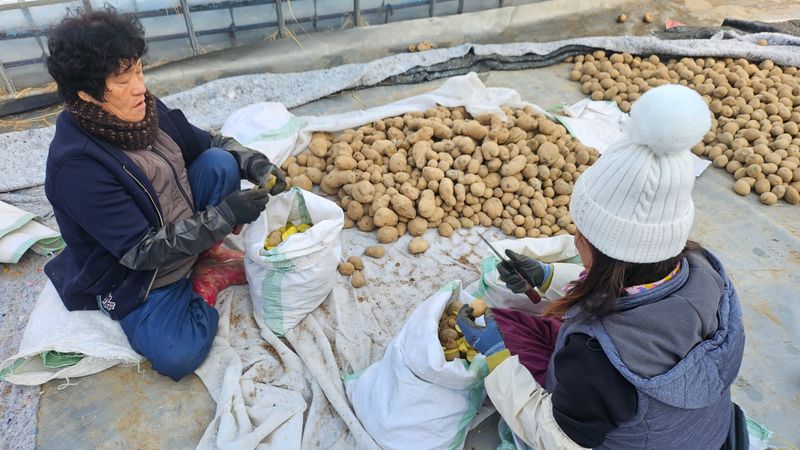 하우스에 감자 파종