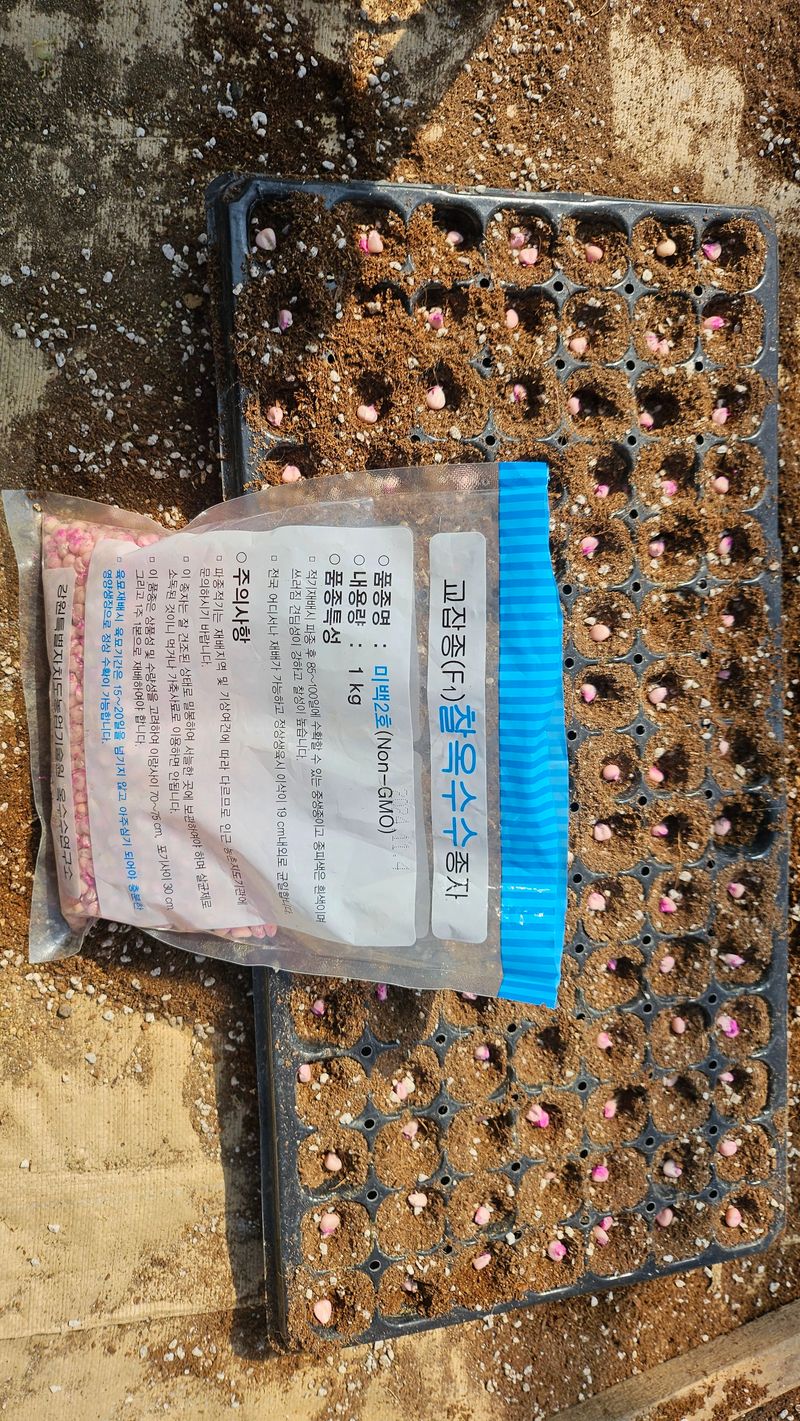 옥수수 40판 파종(판당 105개) 했습니다..