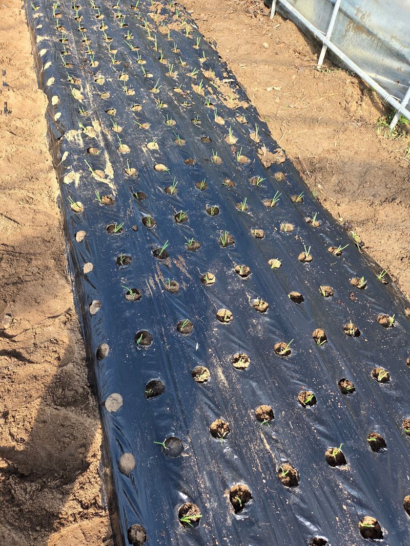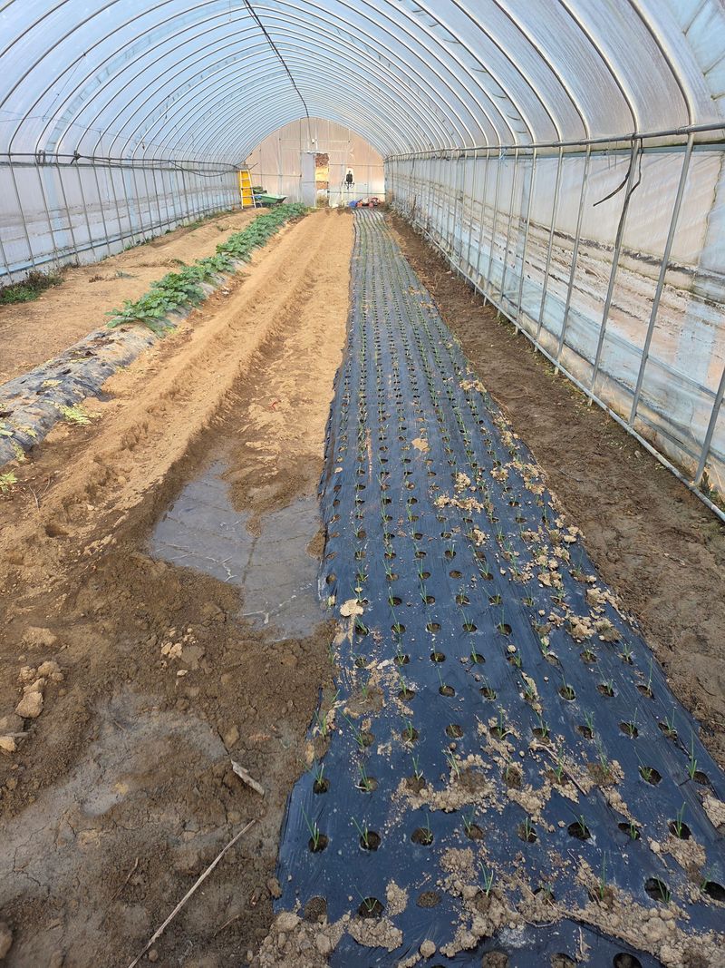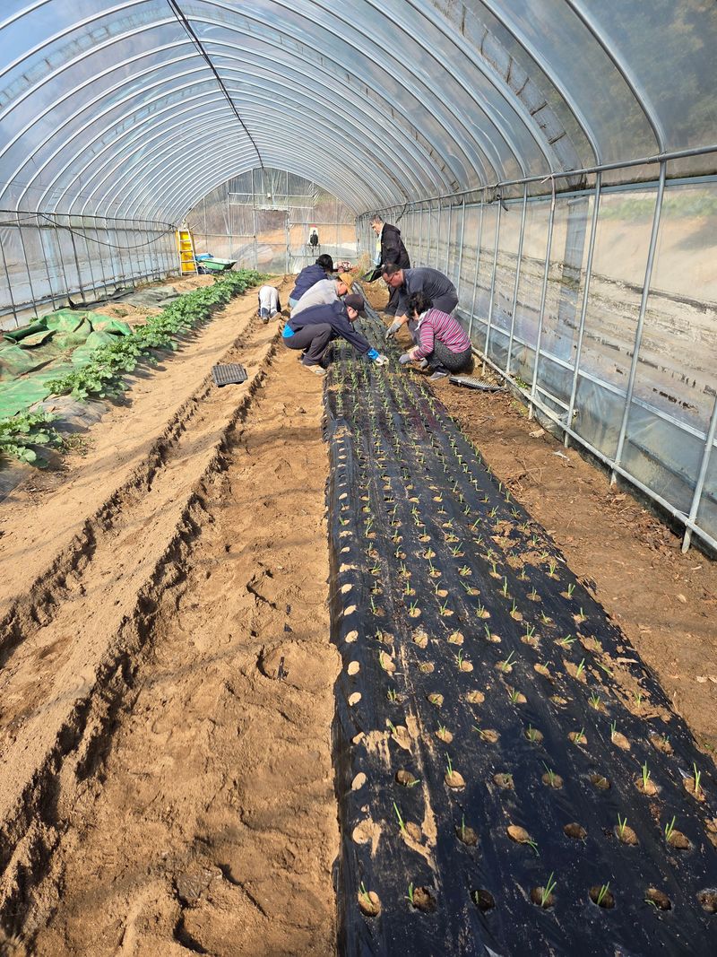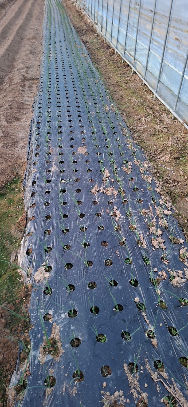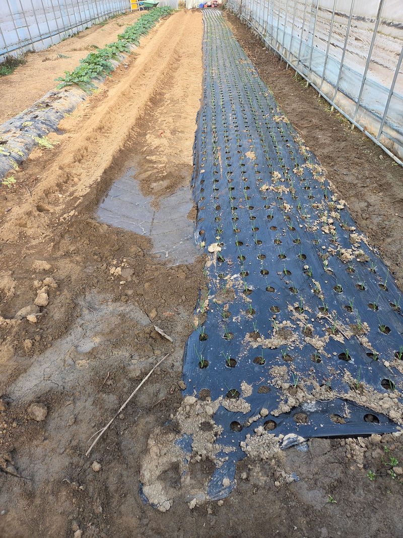 하우스에서 양파가 잘 자라고 있어요. 가끔 물 줍니다