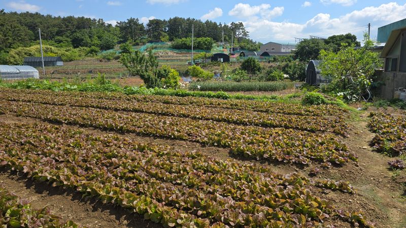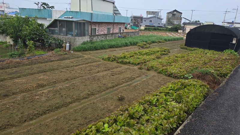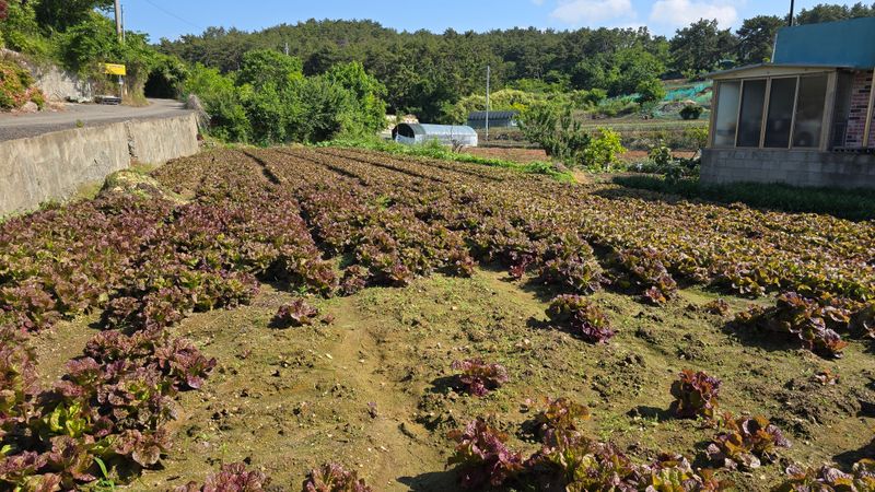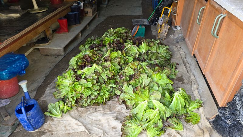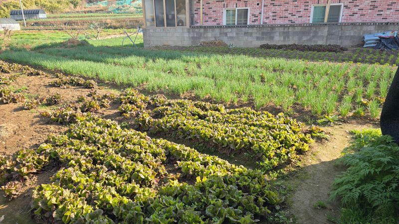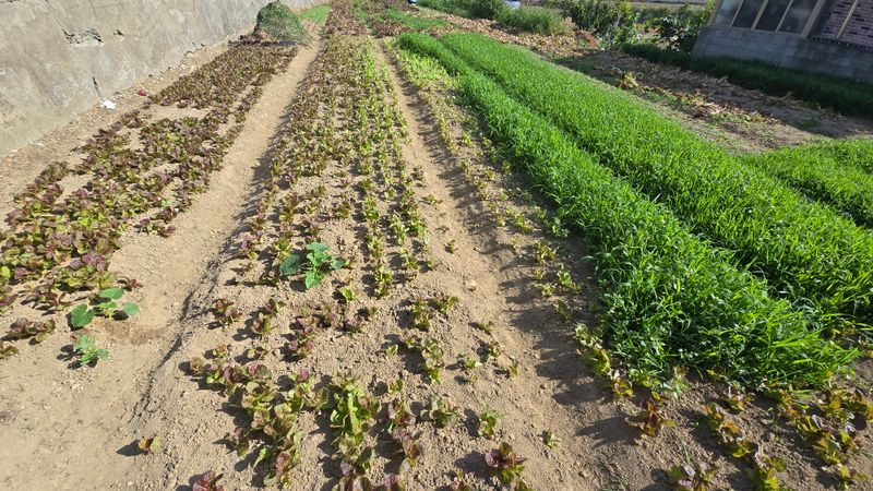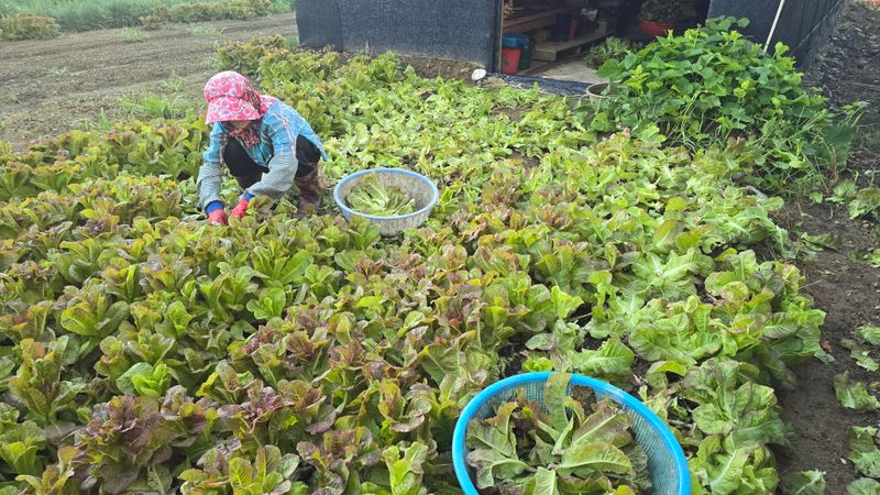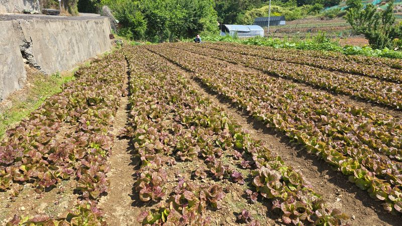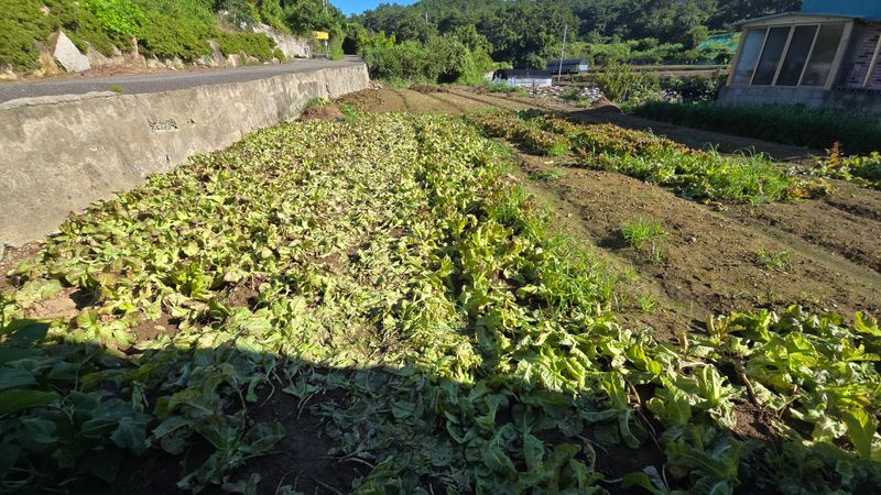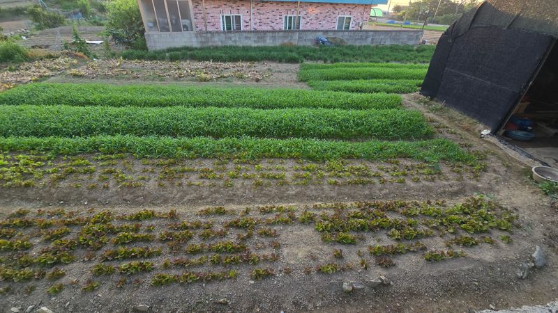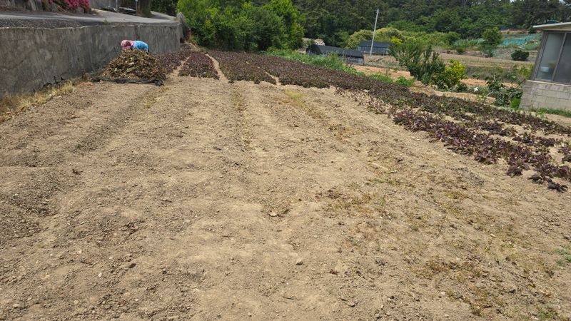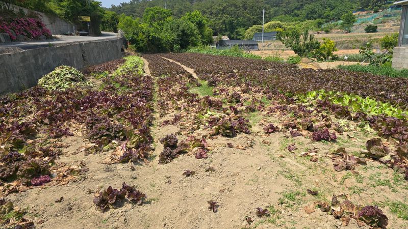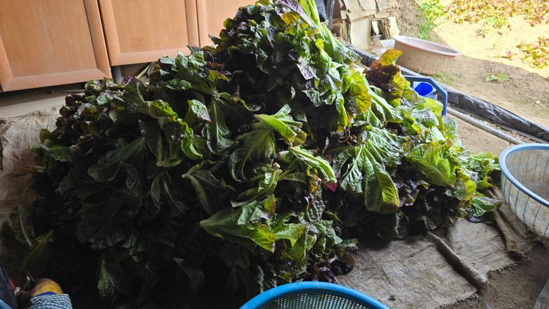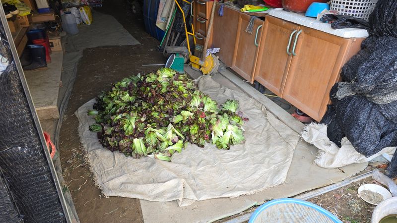 상추 30kg 수확 및 파종상추 차광막 제거. 상추 7고랑 웃비료 살포.